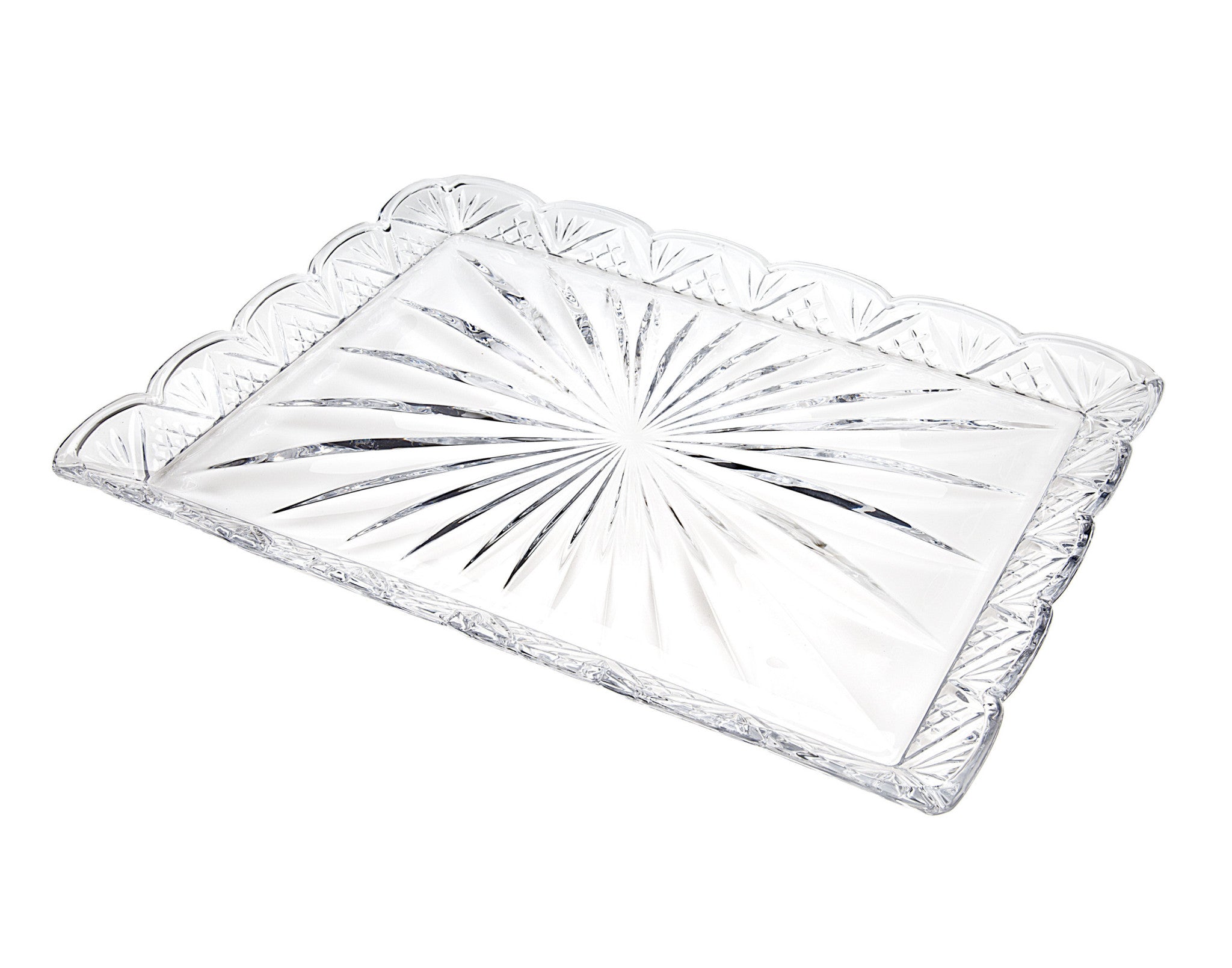 This 12" clear rectangular crystal serving tray is beautiful enough to be left out on the counter...