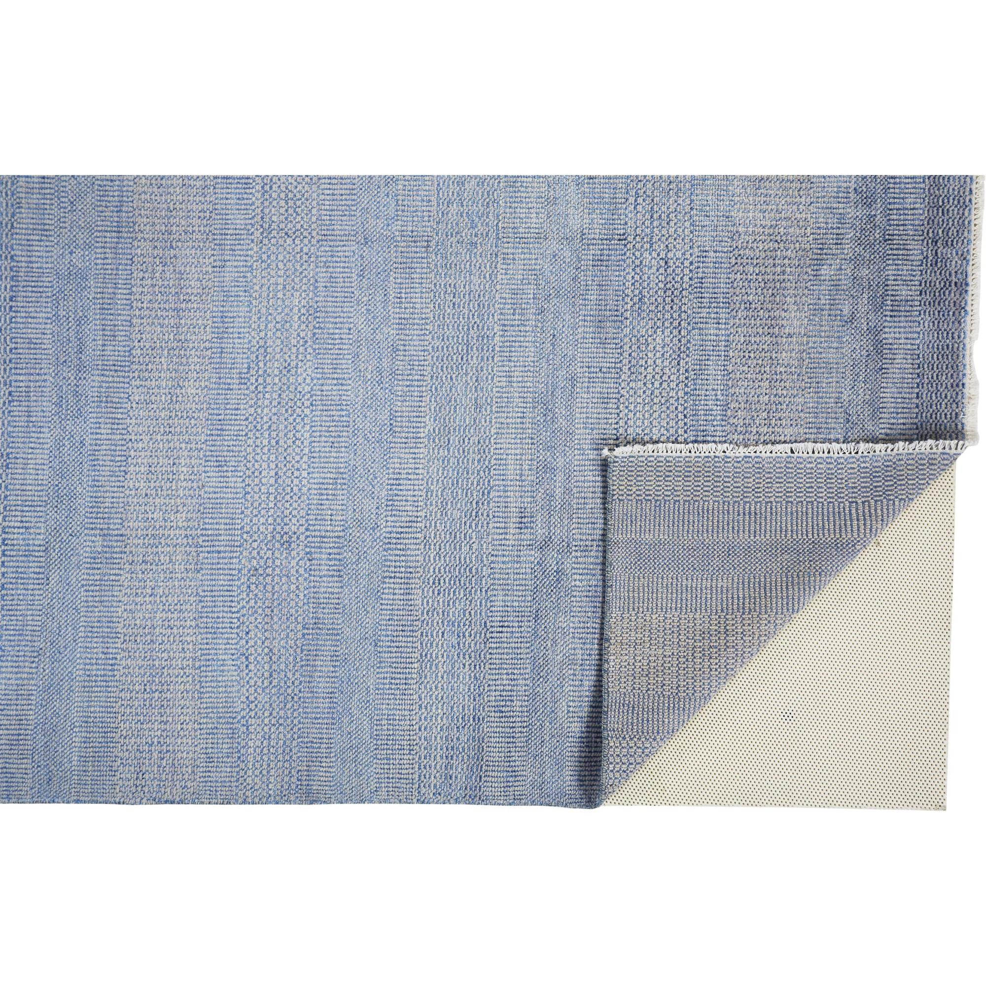 Set an inviting tone in your space with this 12' x 15' blue and silver wool striped...