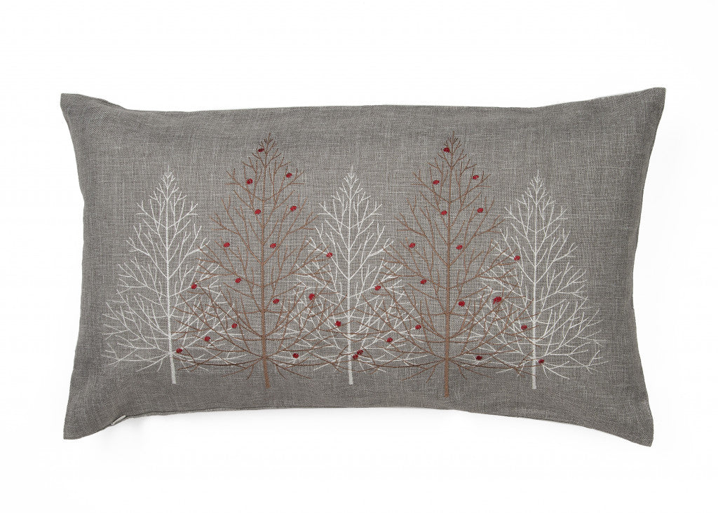 12" X 20" Gray Forest Christmas Trees Polyester Zippered Pillow With Embroidery