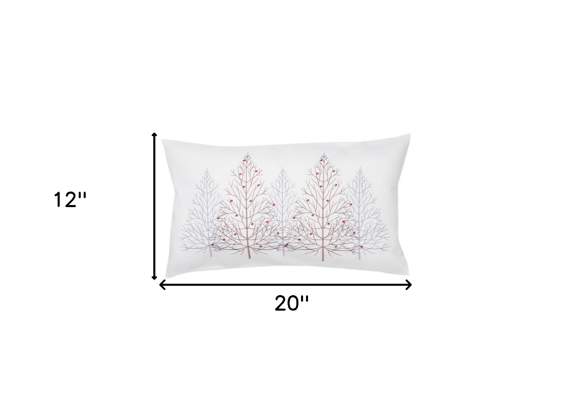 12" X 20" White Forest Christmas Trees Polyester Zippered Pillow With Embroidery
