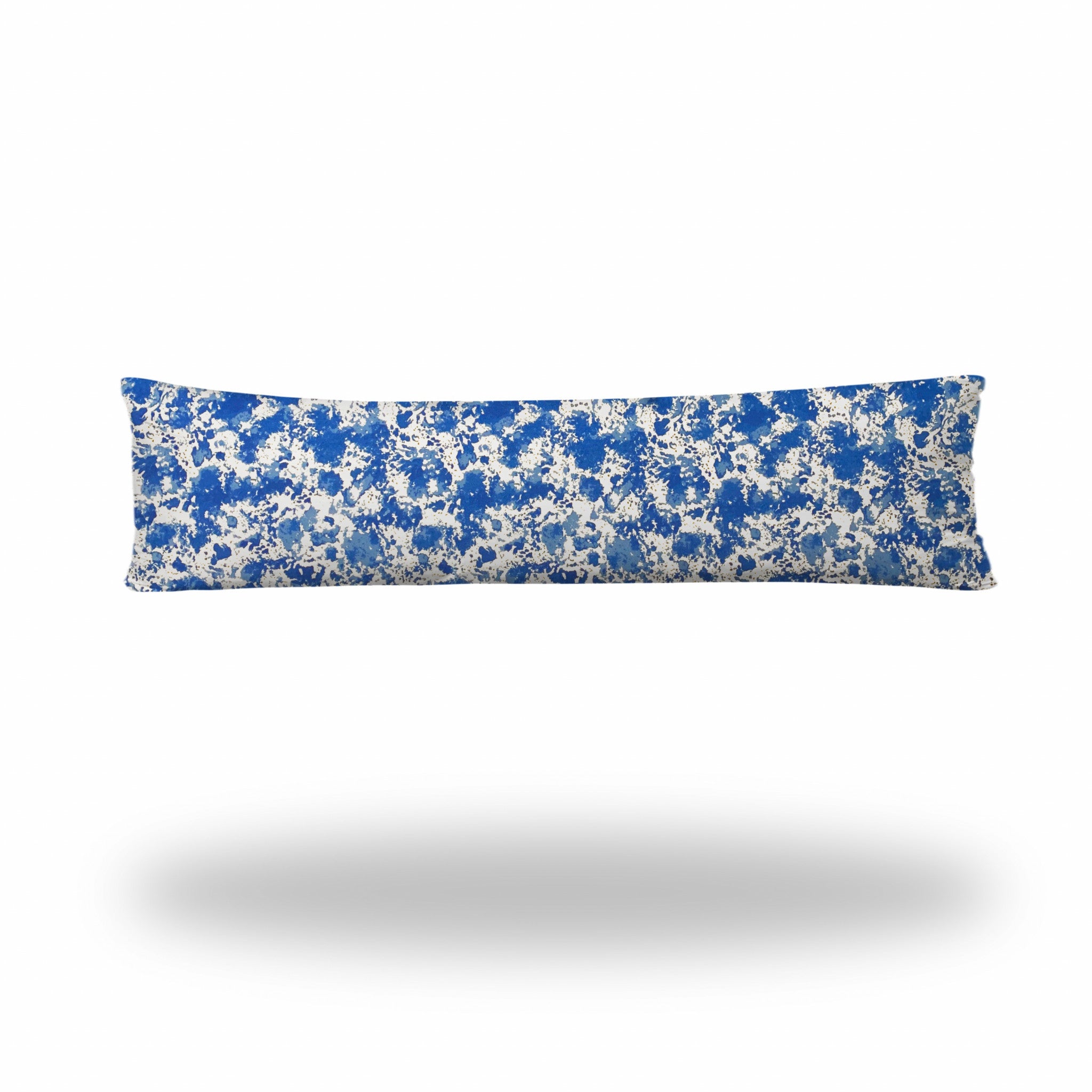 This 12" x 48" blue and white blown seam coastal lumbar indoor outdoor pillow will add a...