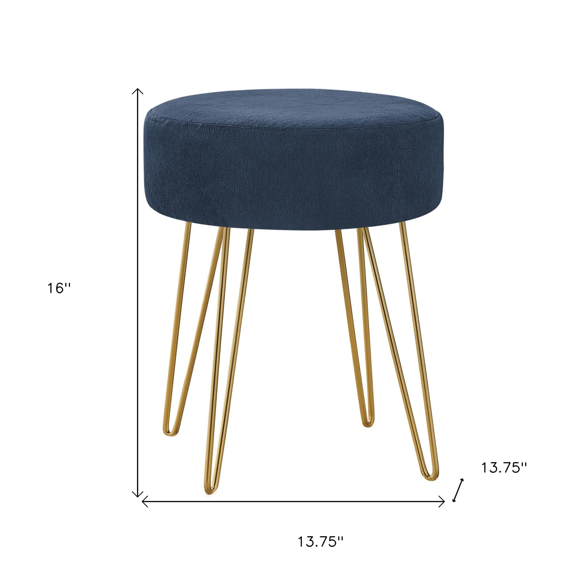 Practicality and fashion mix together with this handy 14" blue velvet and gold round ottoman. A gold...