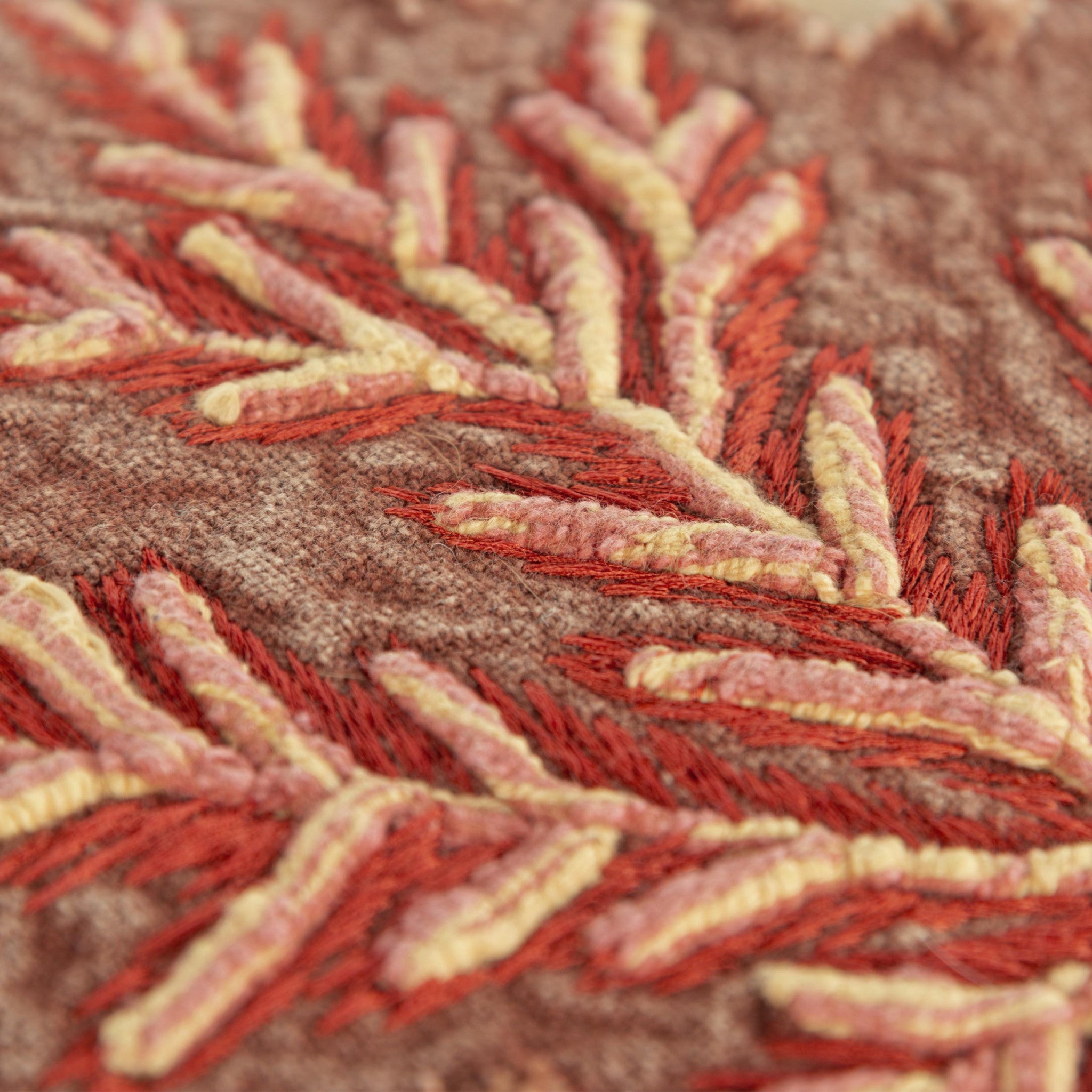 14" X 14" Beige and Brown Thanksgiving Cotton Pillow With Applique, Embroidery Edges