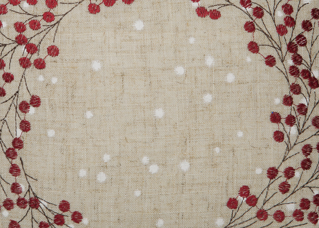 14" X 14" Beige and Red Christmas Wreath Linen Blend Zippered Pillow With Embroidery