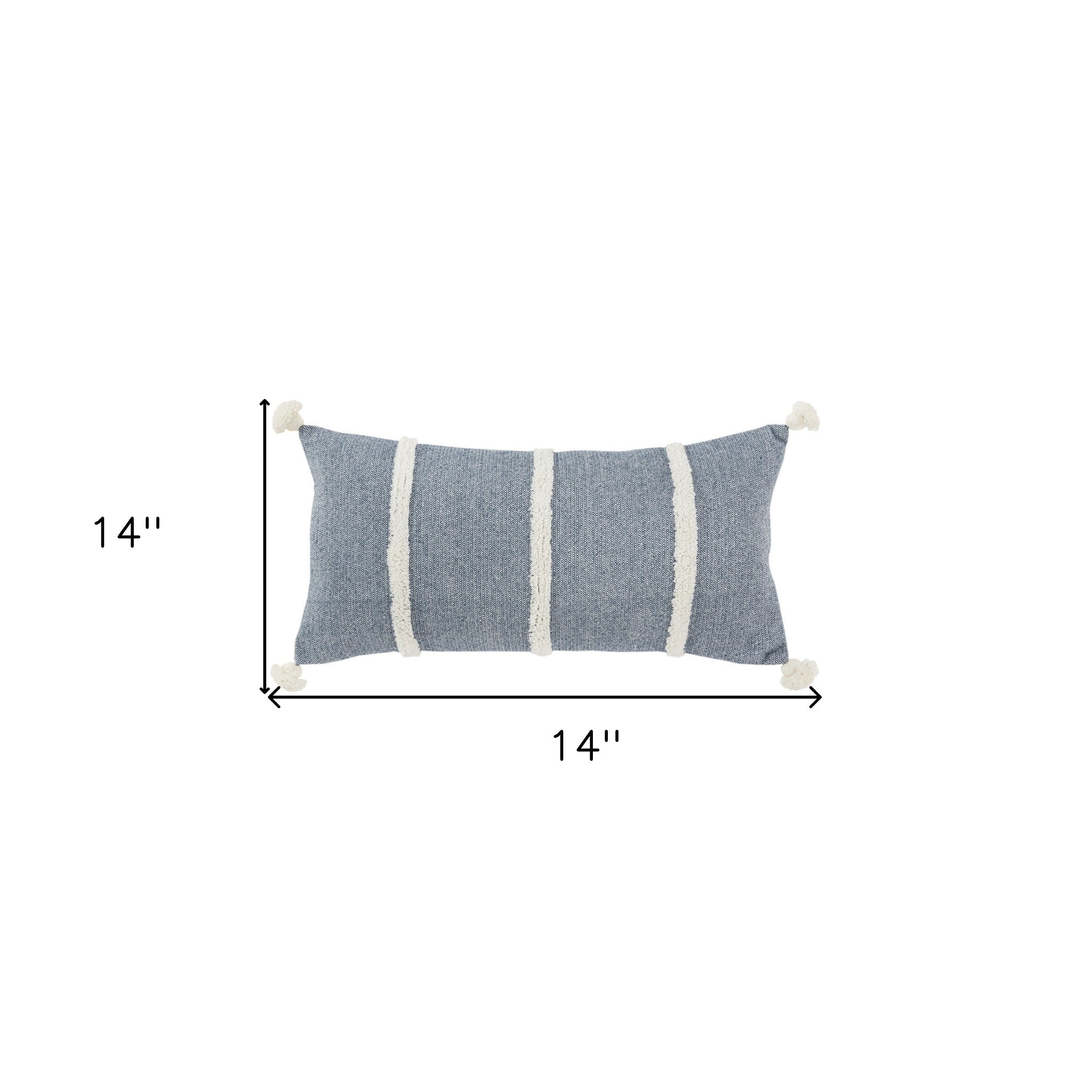 14" X 14" Blue and White Cotton Pillow With Tassels Edges