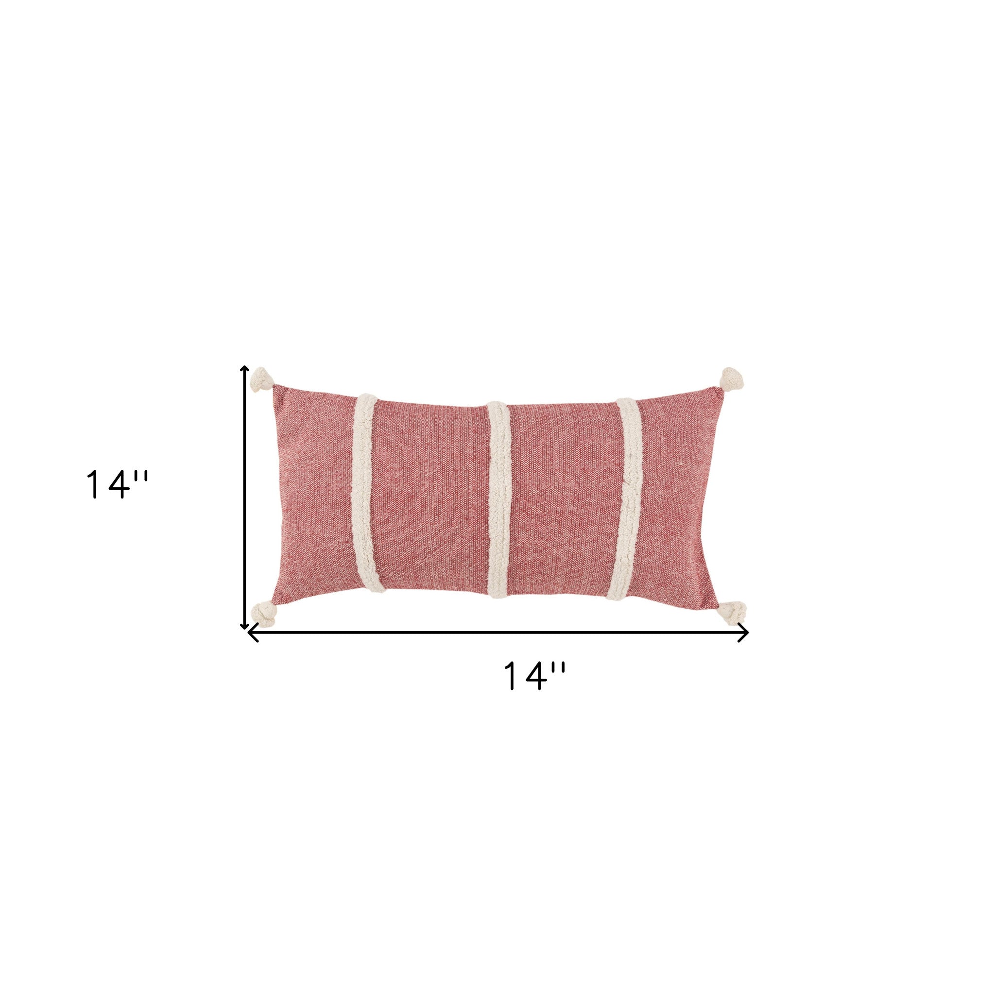 14" X 14" Red and White Cotton Pillow With Tassels Edges