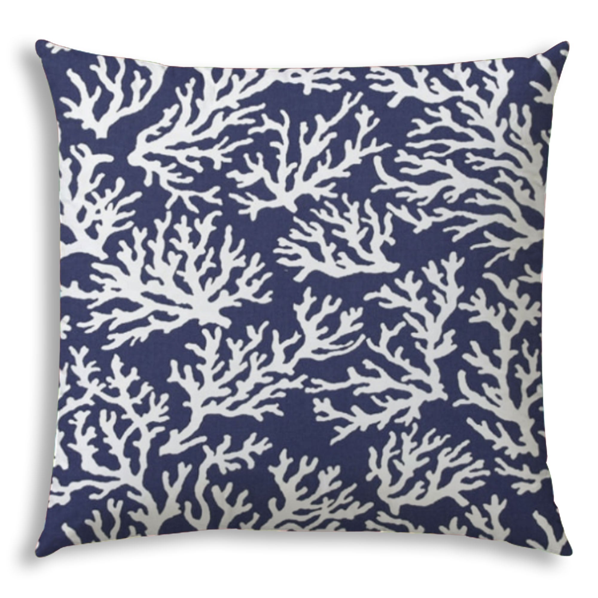 14" X 20" Deep White Corals Blown Seam Coastal Lumbar Indoor Outdoor Pillow