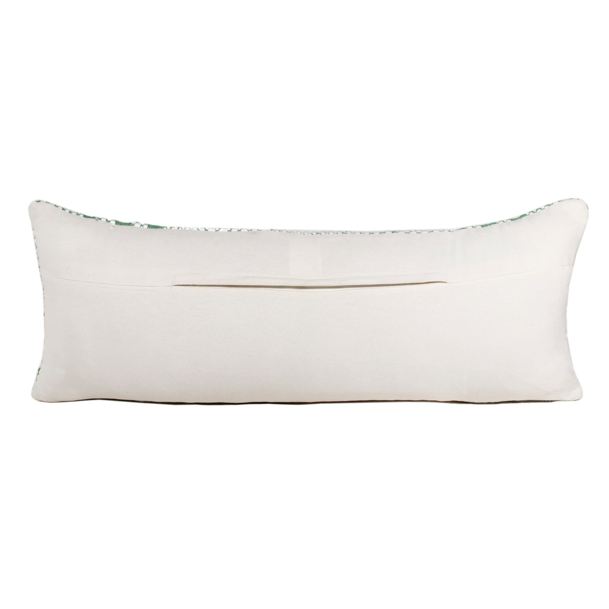 Unique and decorative, this comfortable 14" x 36" deep navy and white 100% cotton geometric zippered pillow...