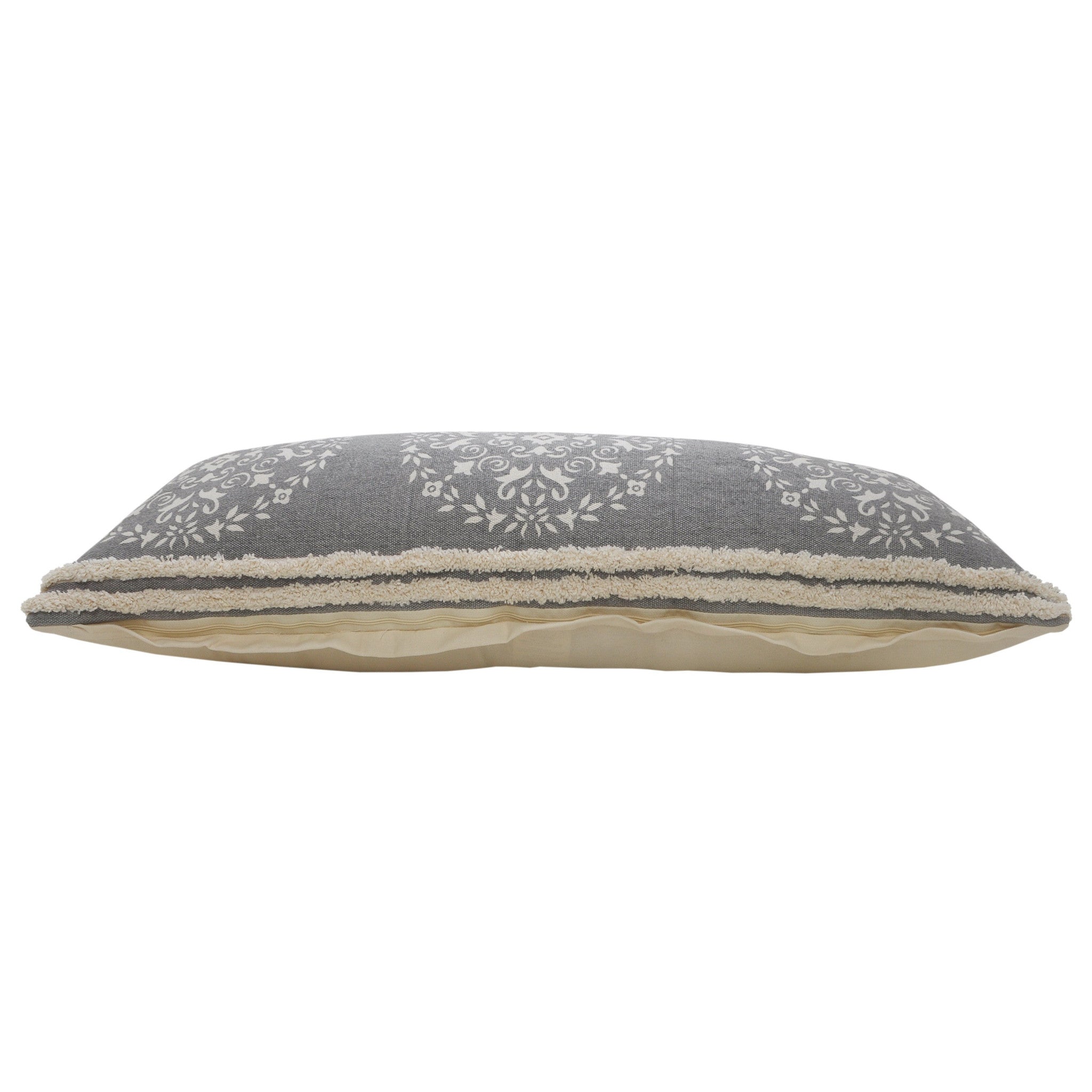 This 14" x 36" gray and white 100% cotton geometric zippered pillow will add a beautiful decorative...