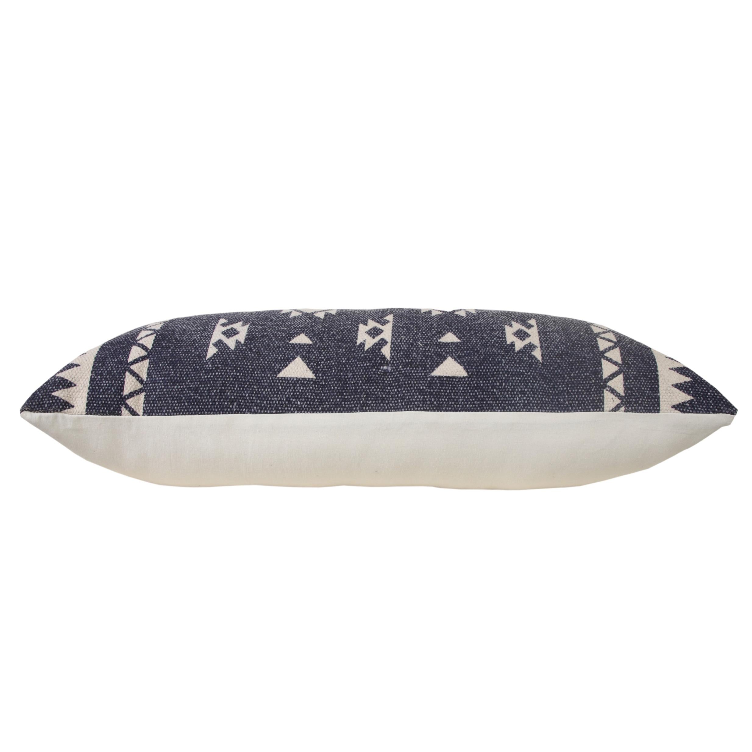 The 14" x 36" navy and white 100% cotton geometric zippered pillow is the perfect decorative accessory...