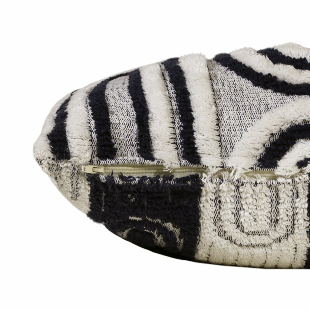 The 14" x 36" white and blue 100% cotton geometric zippered pillow is the perfect decorative accessory...