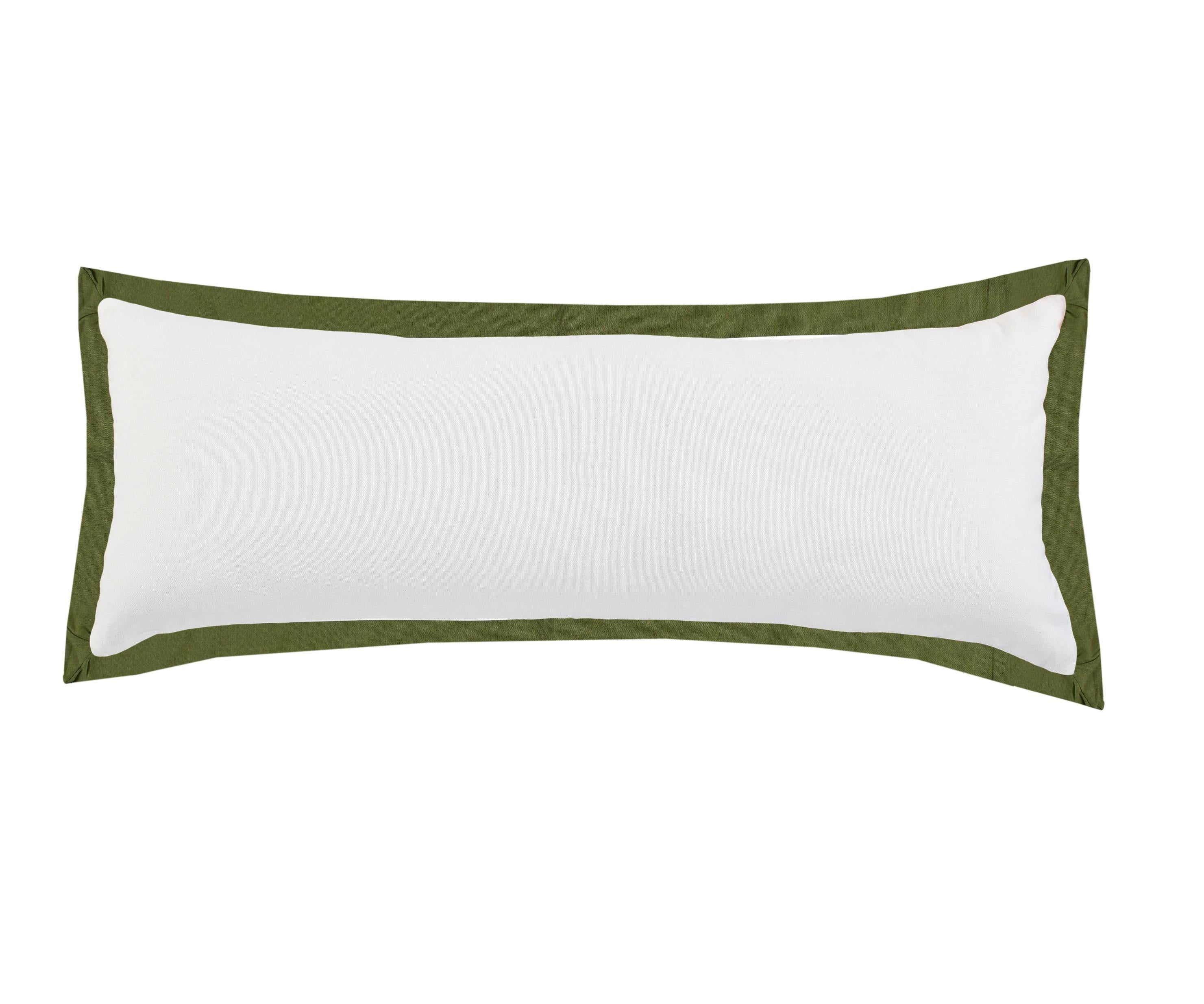 Unique and decorative, this comfortable 14" x 36" white and moss green 100% cotton geometric zippered pillow...