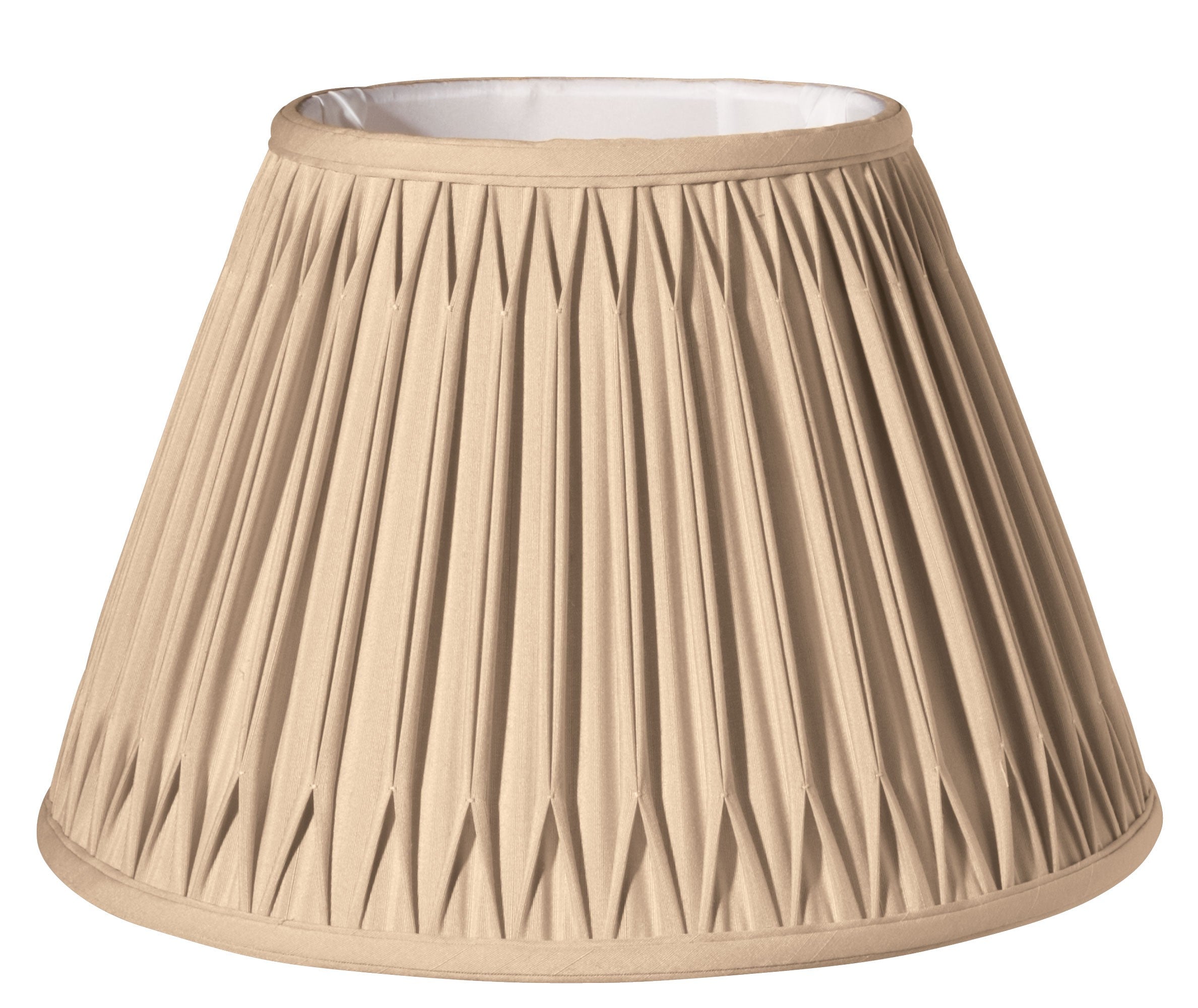 This 16" Vintage Gold Slanted Bell Smocked Paperback Shantung Lampshade has a hint of traditional flair and...