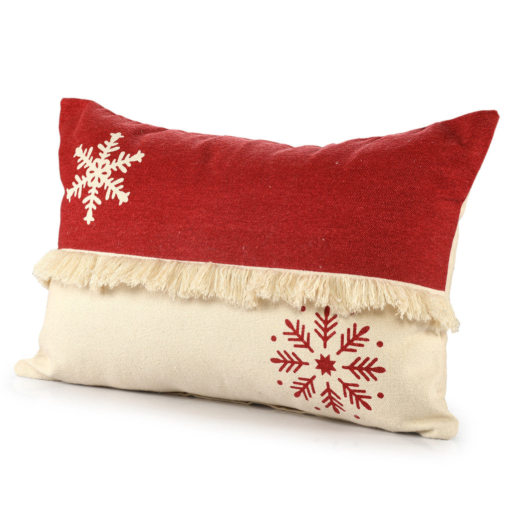 16" X 24" Red Christmas Snowflakes Cotton Abstract Zippered Pillow With Fringe