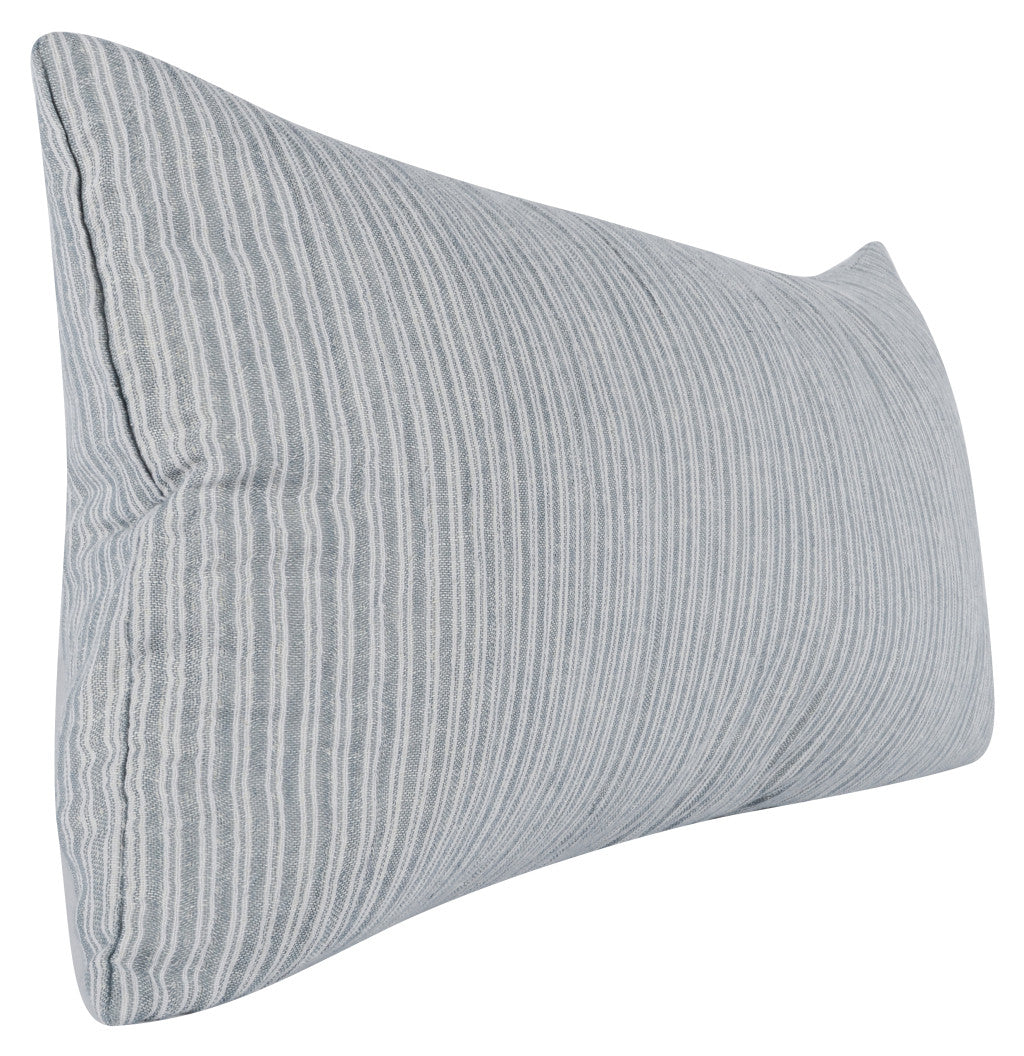16" X 36" Blue Linen Striped Zippered Pillow