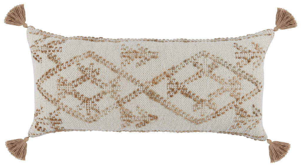 16" X 36" Ivory Jute Patterned Zippered Pillow