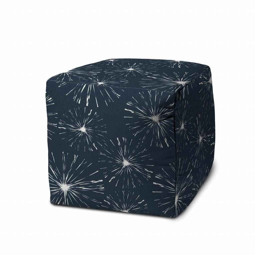17" Blue Polyester Cube Geometric Indoor Outdoor Pouf Ottoman
