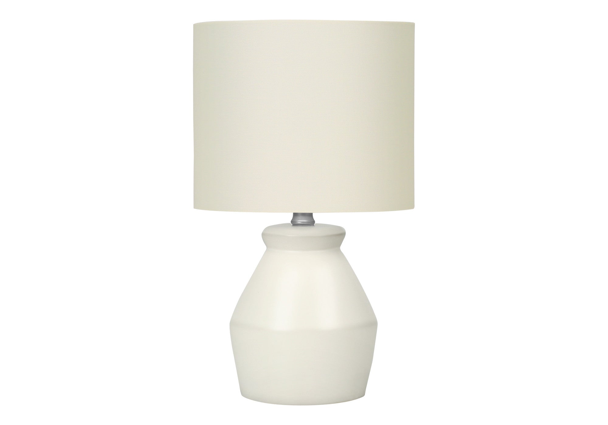 This 17-inch cream ceramic geometric table lamp with cream drum shade is the perfect combination of design...
