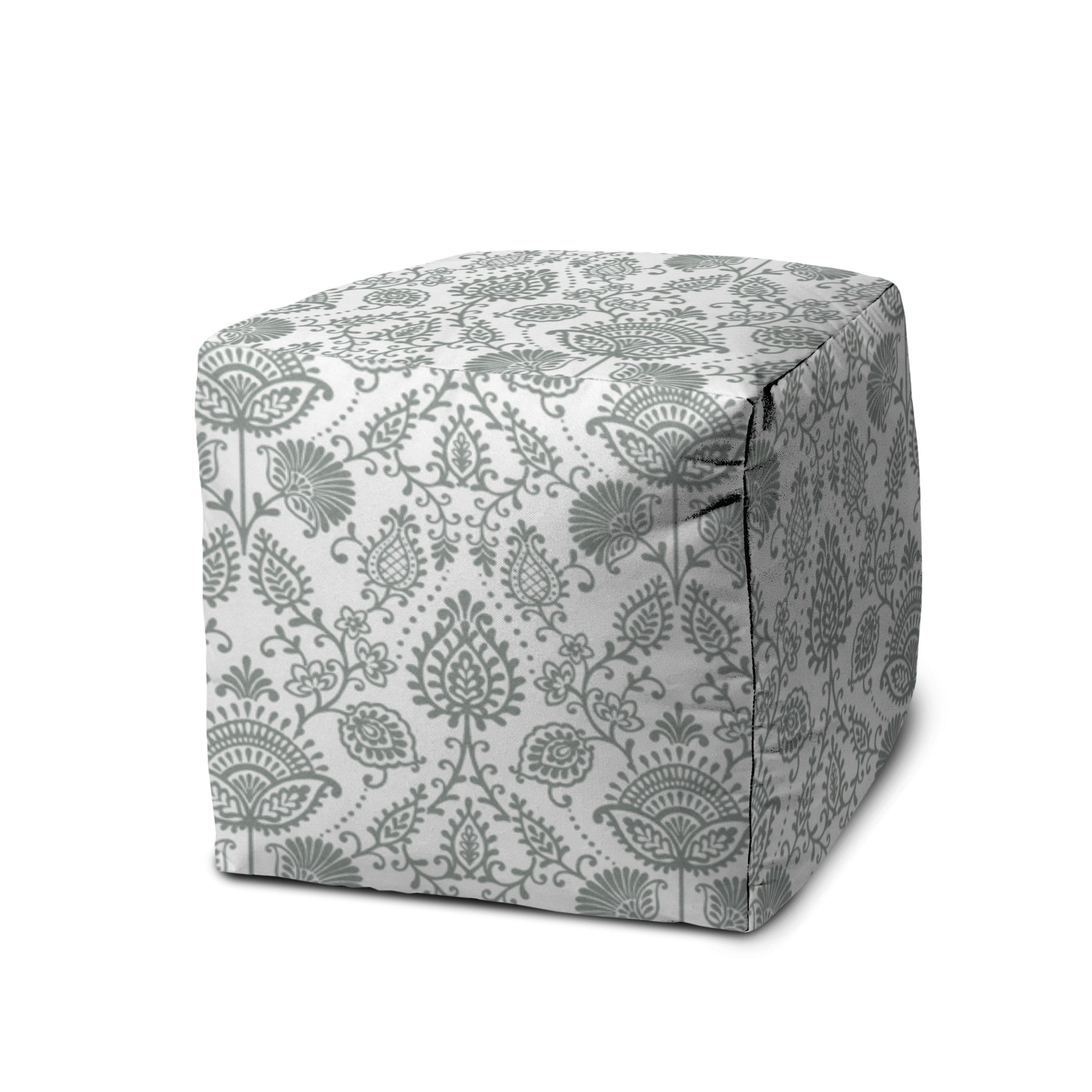 17" Gray Polyester Cube Indoor Outdoor Pouf Ottoman