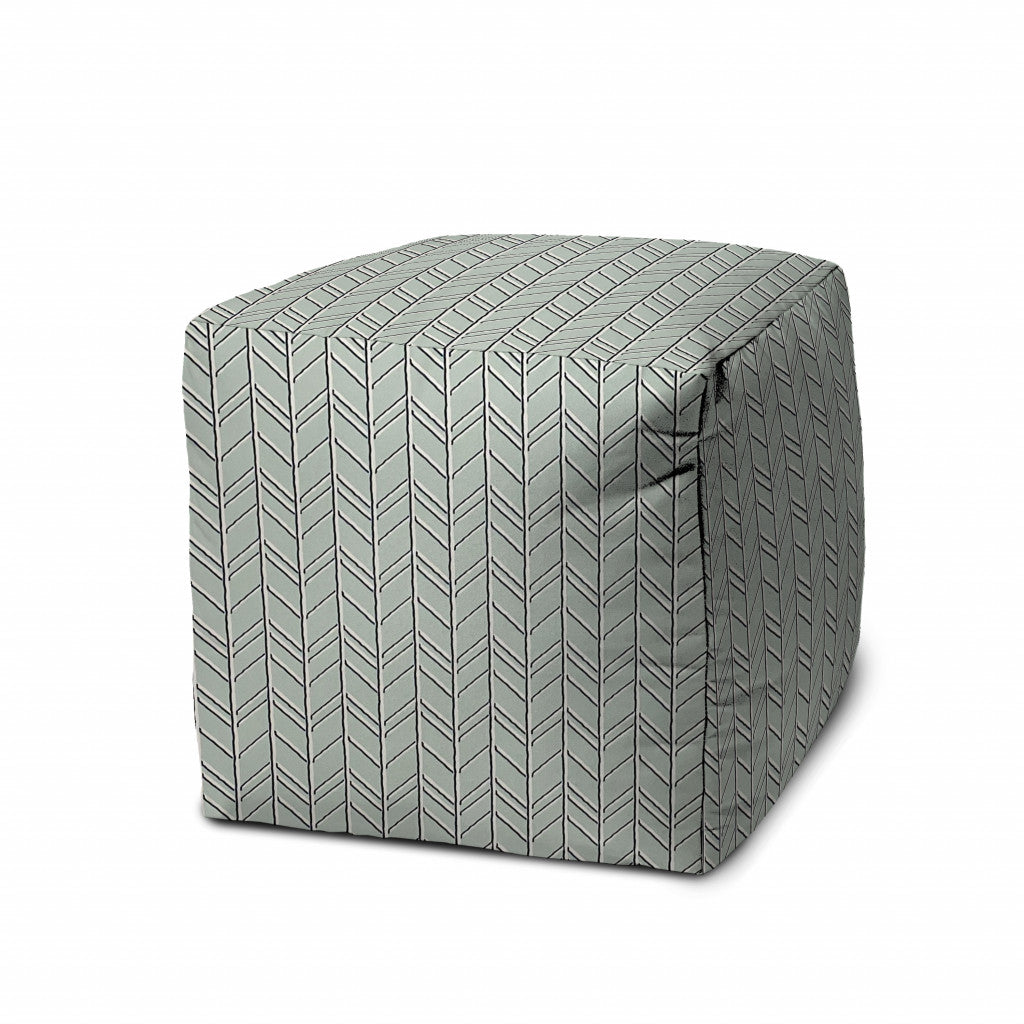 17" Green Polyester Cube Geometric Indoor Outdoor Pouf Ottoman