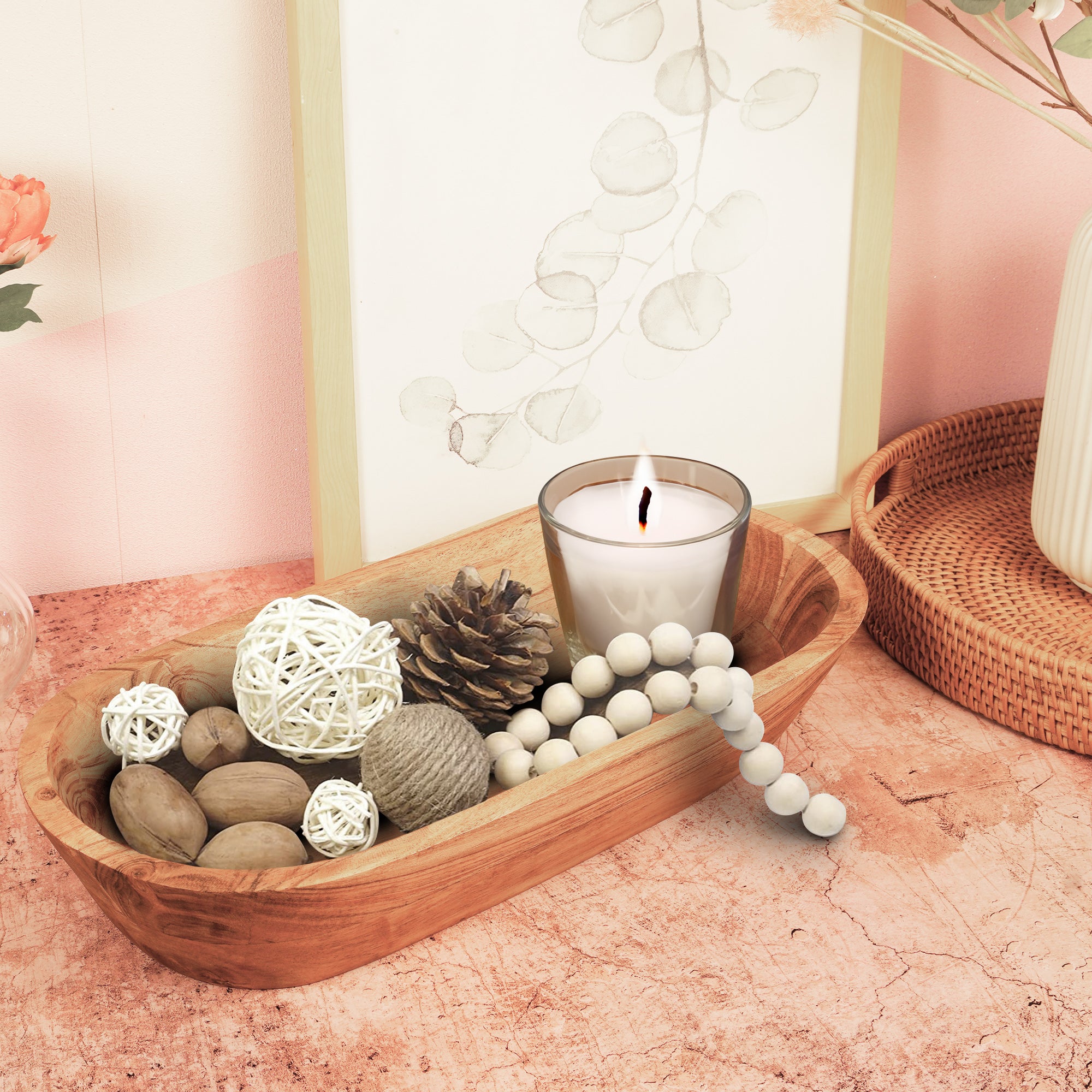 17" Natural Brown Acacia Wood Oval Centerpiece Dough Bowl