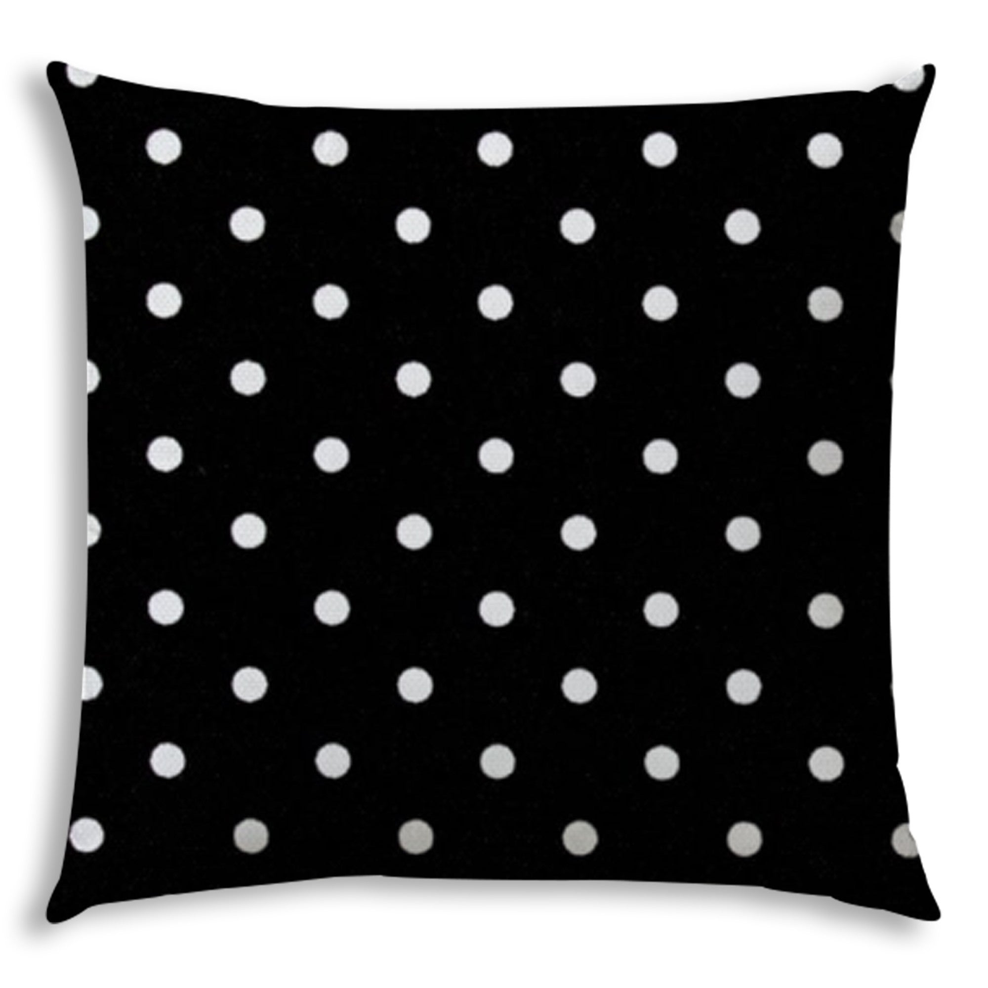 The 17" x 17" black and white blown seam polka dots lumbar indoor outdoor pillow is the...