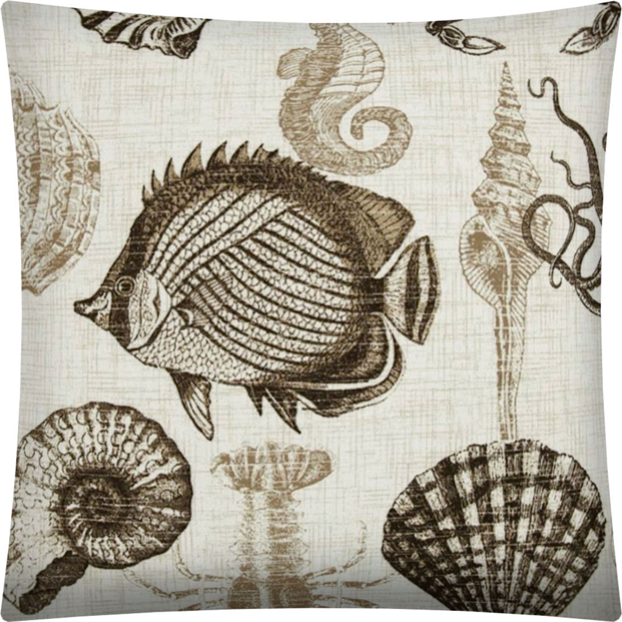 17" X 17" Brown And Natural Brown Fish Zippered Throw Indoor Outdoor Pillow Cover