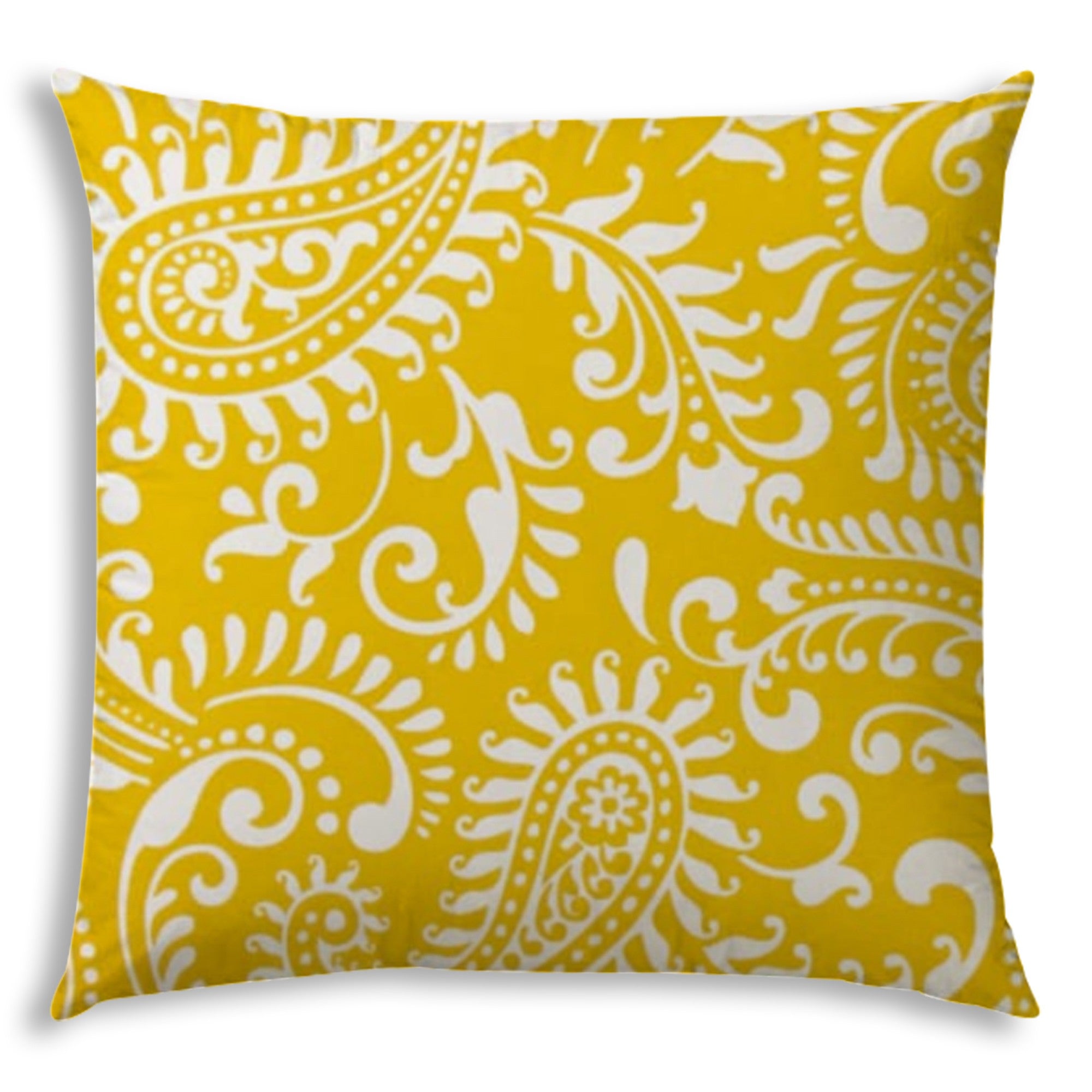This 17" x 17" cream and white blown seam paisley lumbar indoor outdoor pillow will add a...