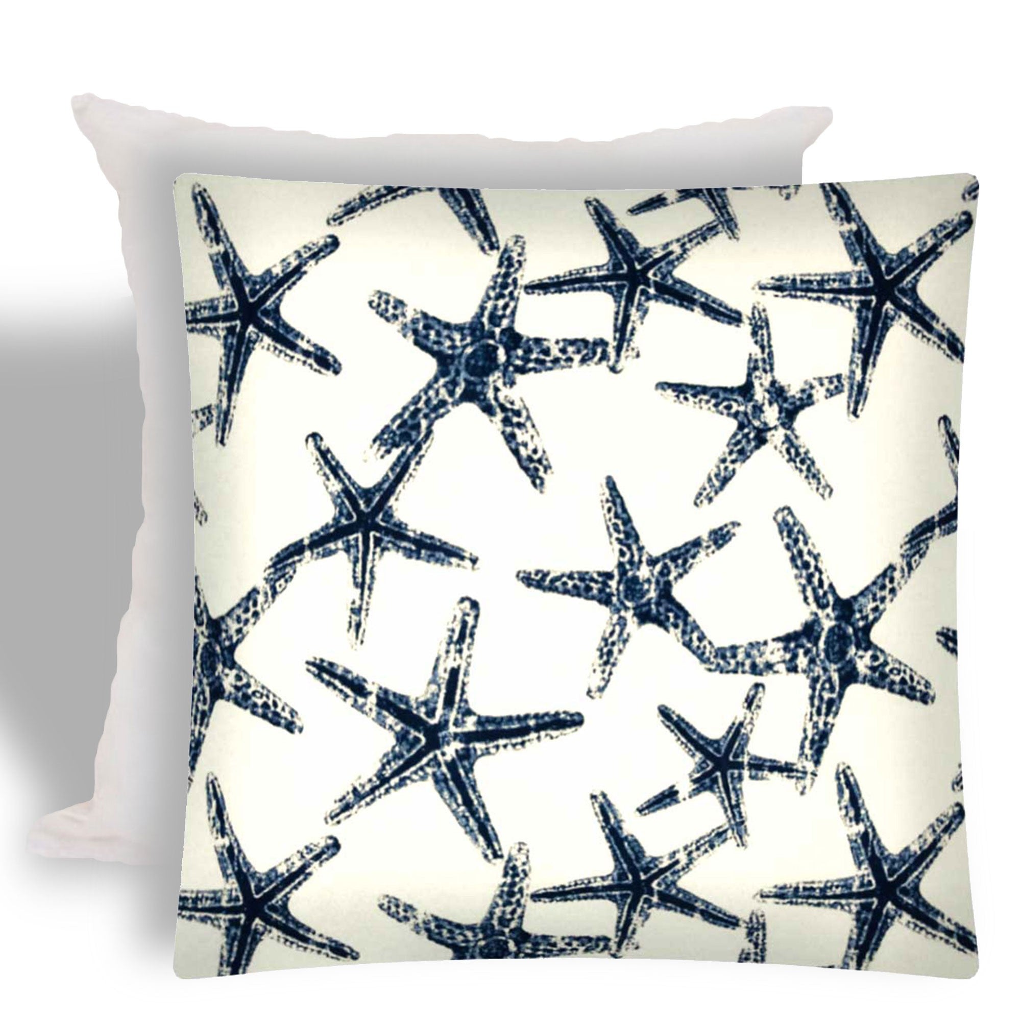 The 17" x 17" navy blue and white starfish zippered coastal throw indoor outdoor pillow is the...