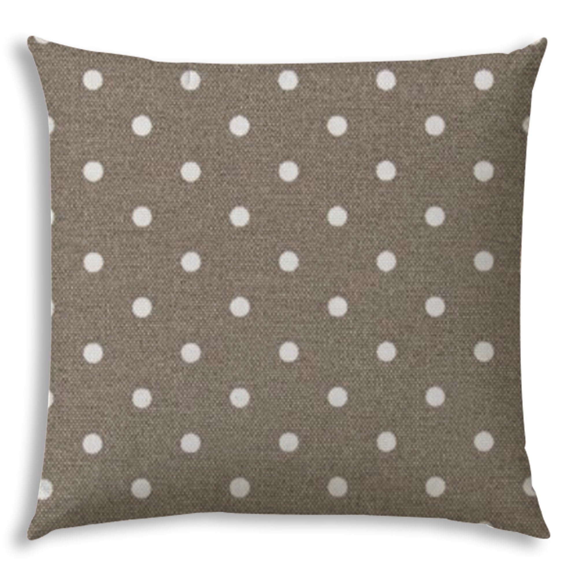 17" X 17" Taupe And White Blown Seam Polka Dots Lumbar Indoor Outdoor Pillow