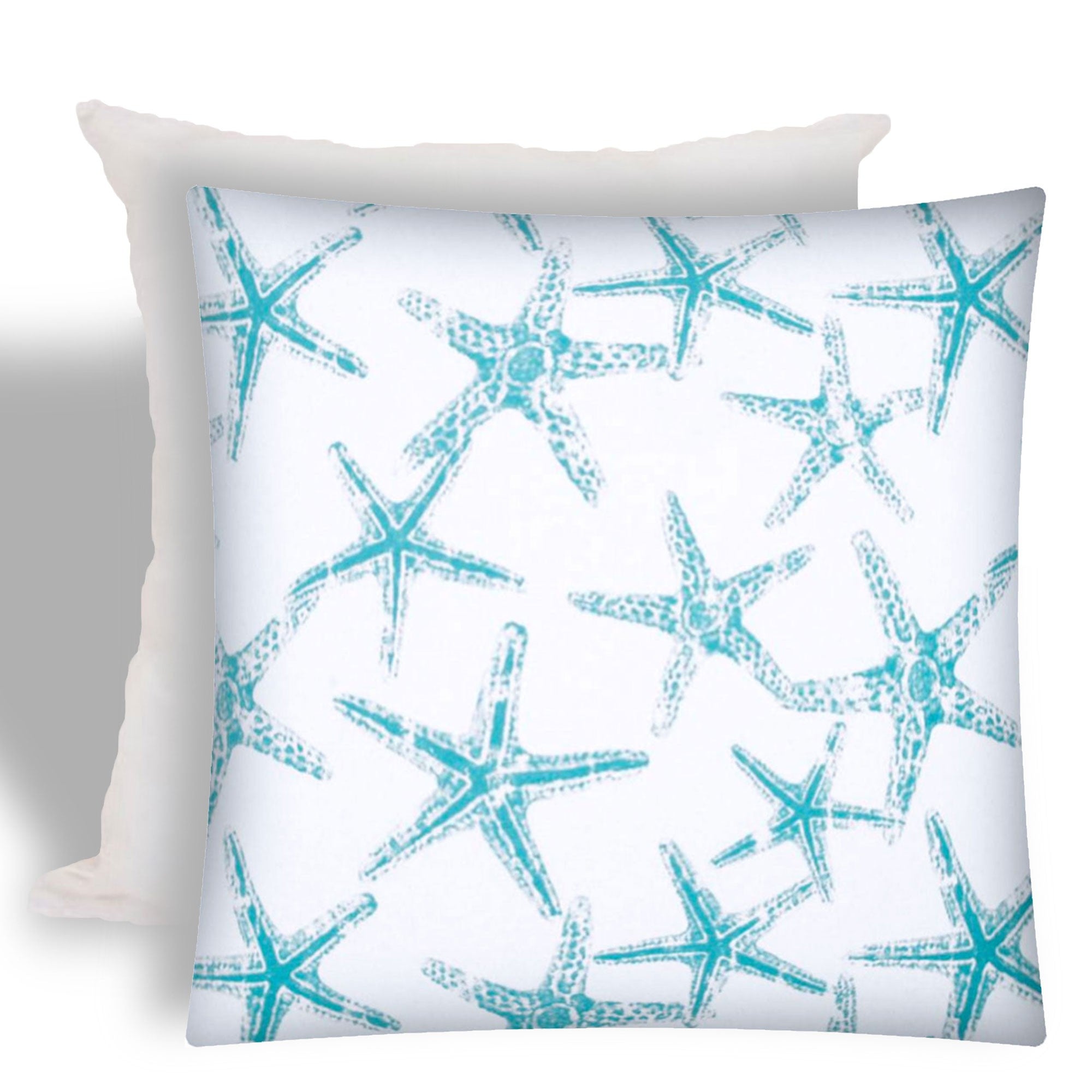 17" X 17" Turquoise And White Starfish Zippered Coastal Throw Indoor Outdoor Pillow