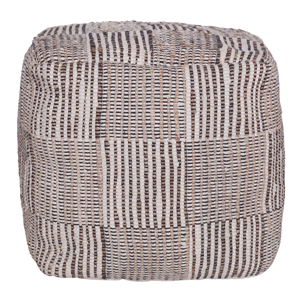 18" Brown Cotton Cube Geometric Pouf Ottoman