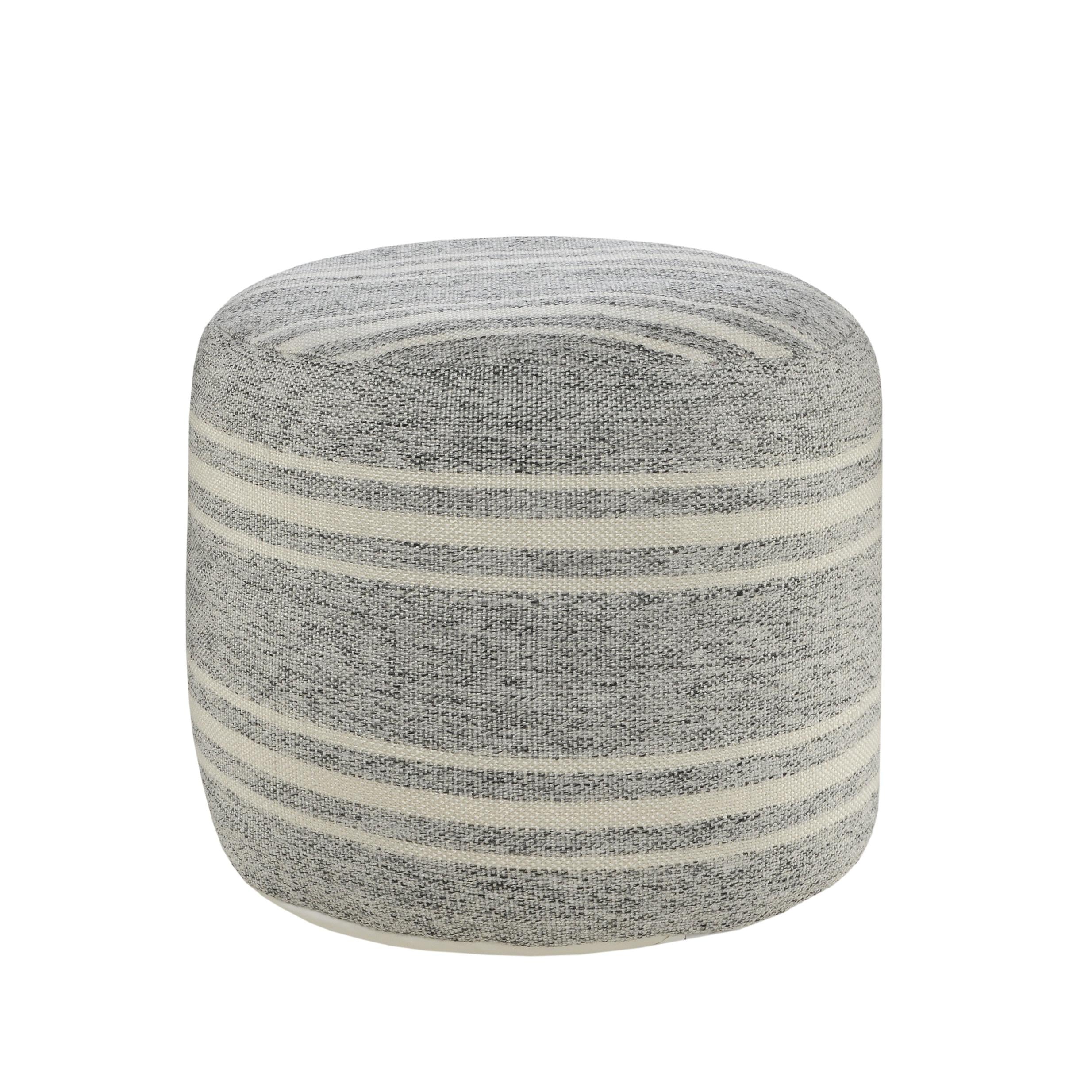 18" Gray Polyester Round Striped Indoor Outdoor Pouf Ottoman