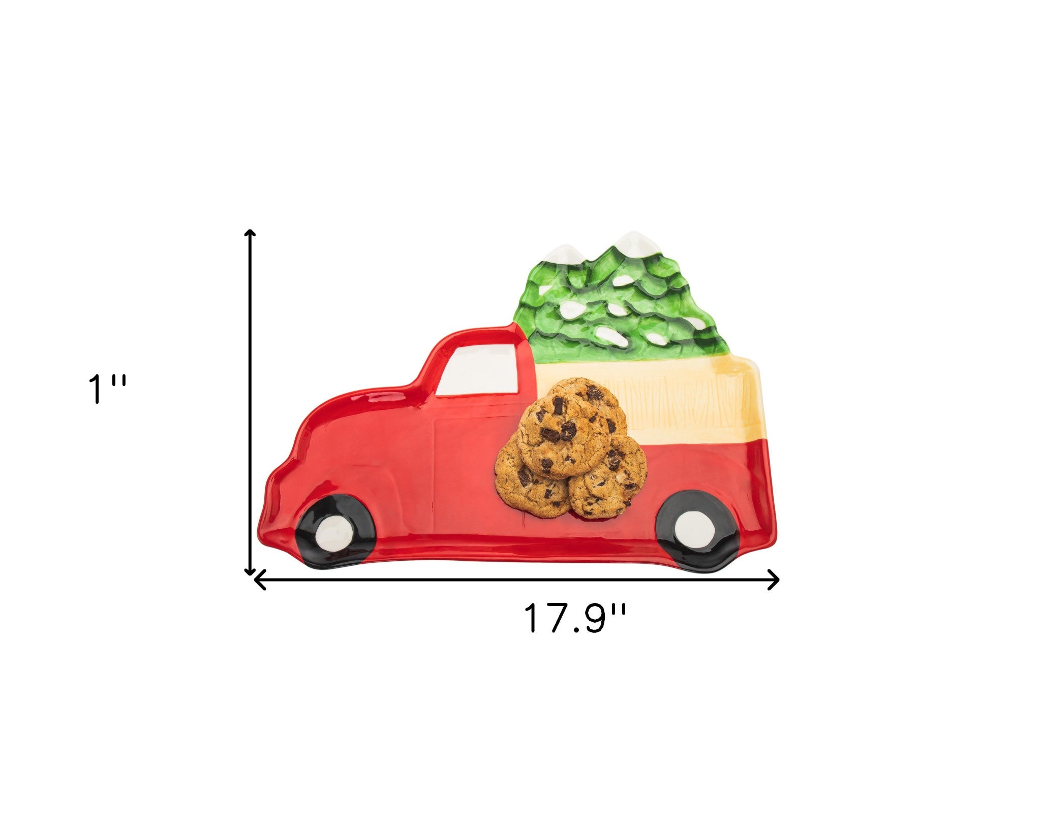 18" Green and Red Red Truck Porcelain China Christmas Serving Tray