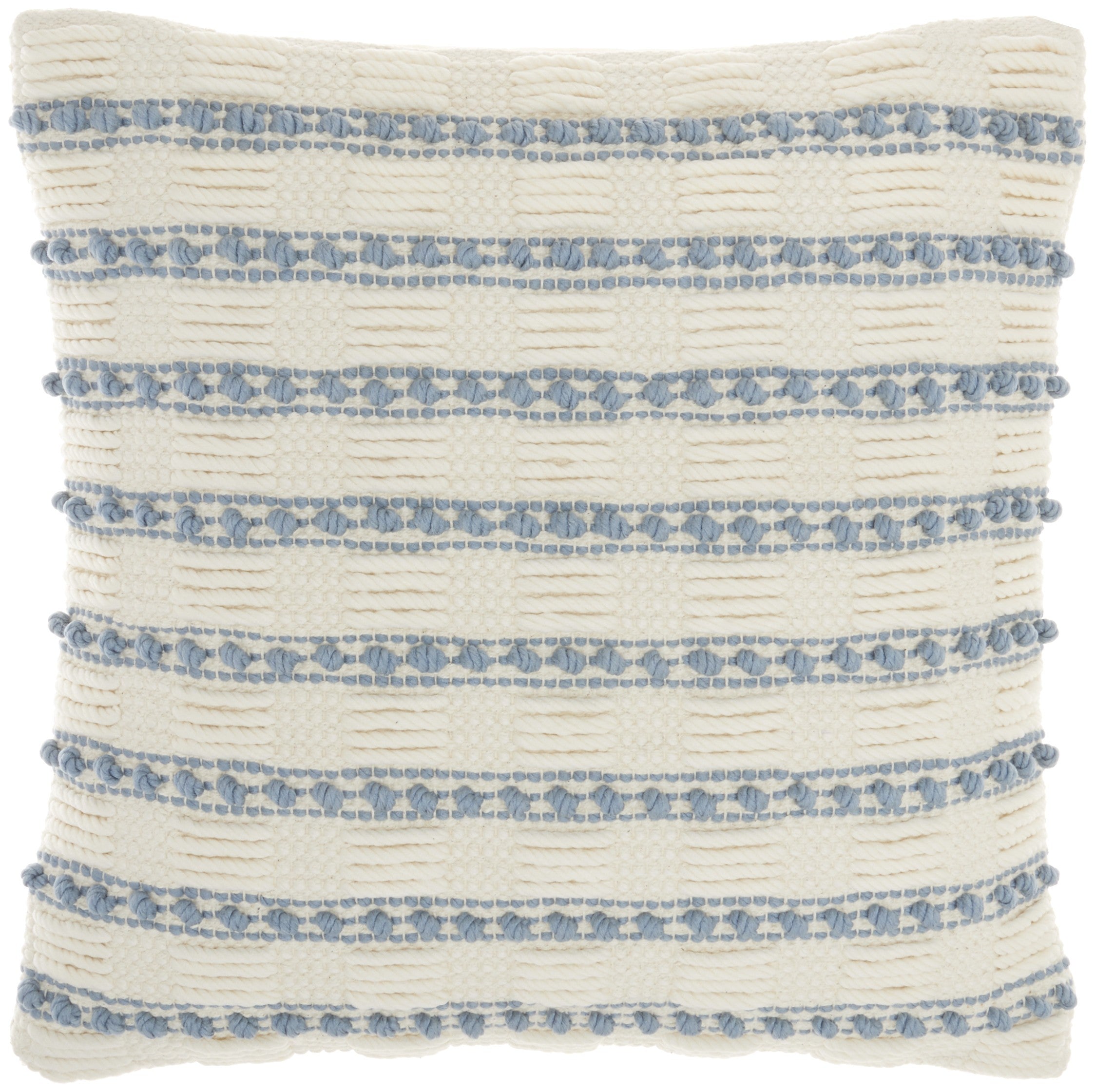 18" Pale Blue And Ivory Textured Stripes Throw Pillow