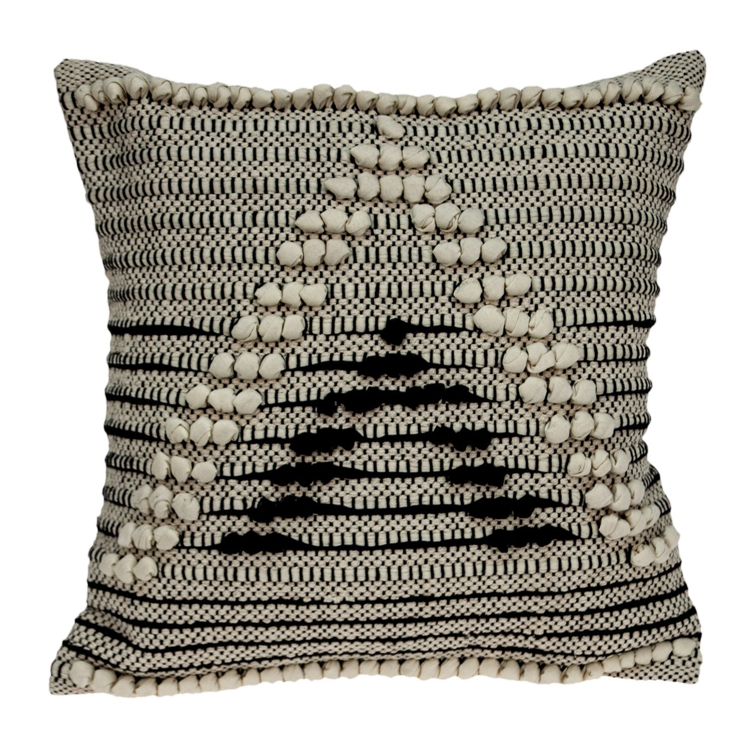 The perfect complement to your sofa, favorite chair, or bed, this 18" x 18" beige and black...