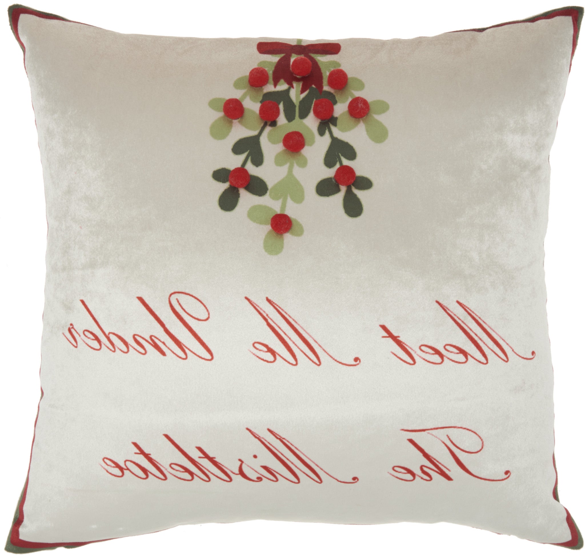 18" X 18" Cream Red And Green Zippered Handmade Polyester Christmas Throw Pillow