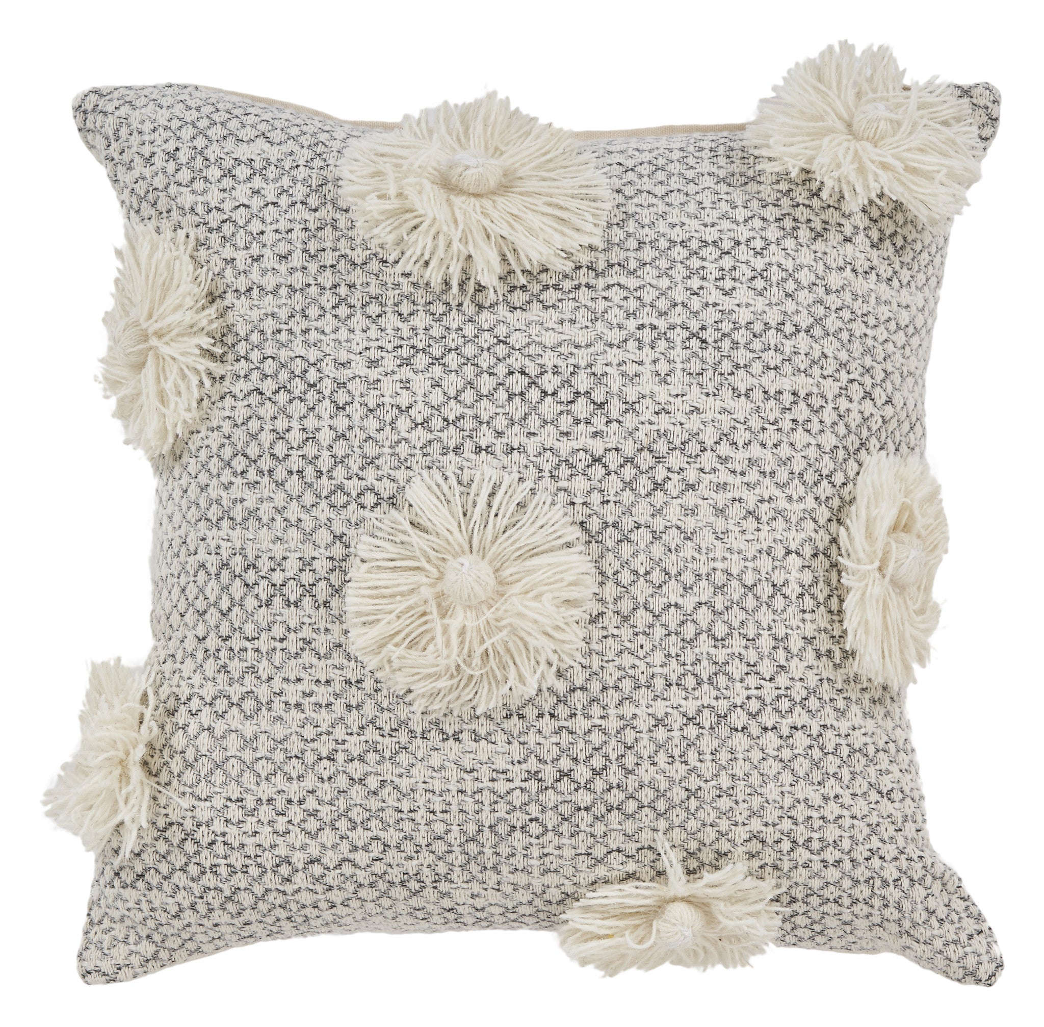18" X 18" Gray and Ivory Geometric Cotton Zippered Pillow With Tassels
