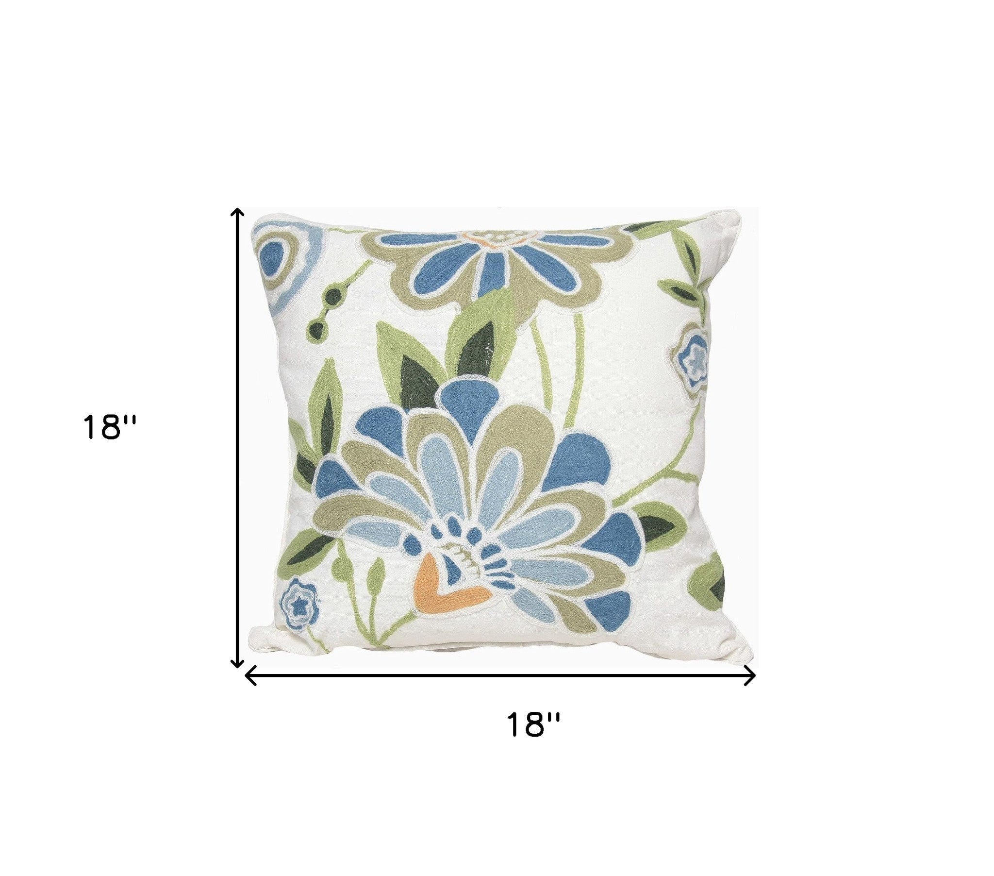 18"x18" Blue and White 100% Cotton Floral Zippered Pillow
