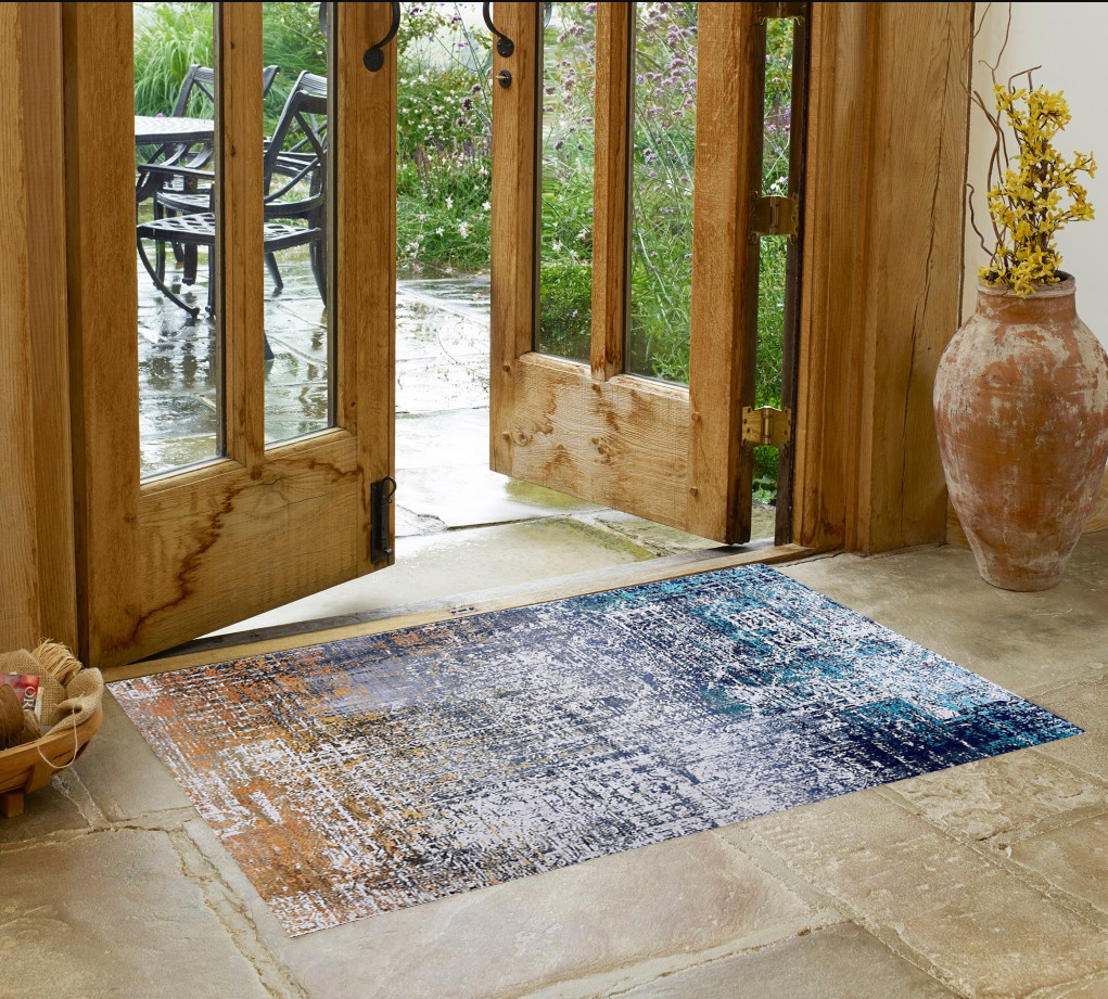 2' x 3' Blue and Silver Abstract Shag Printed Washable Non Skid Area Rug