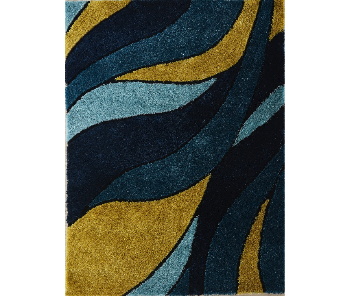 2' x 3' Blue and Yellow Shag Hand Tufted Area Rug