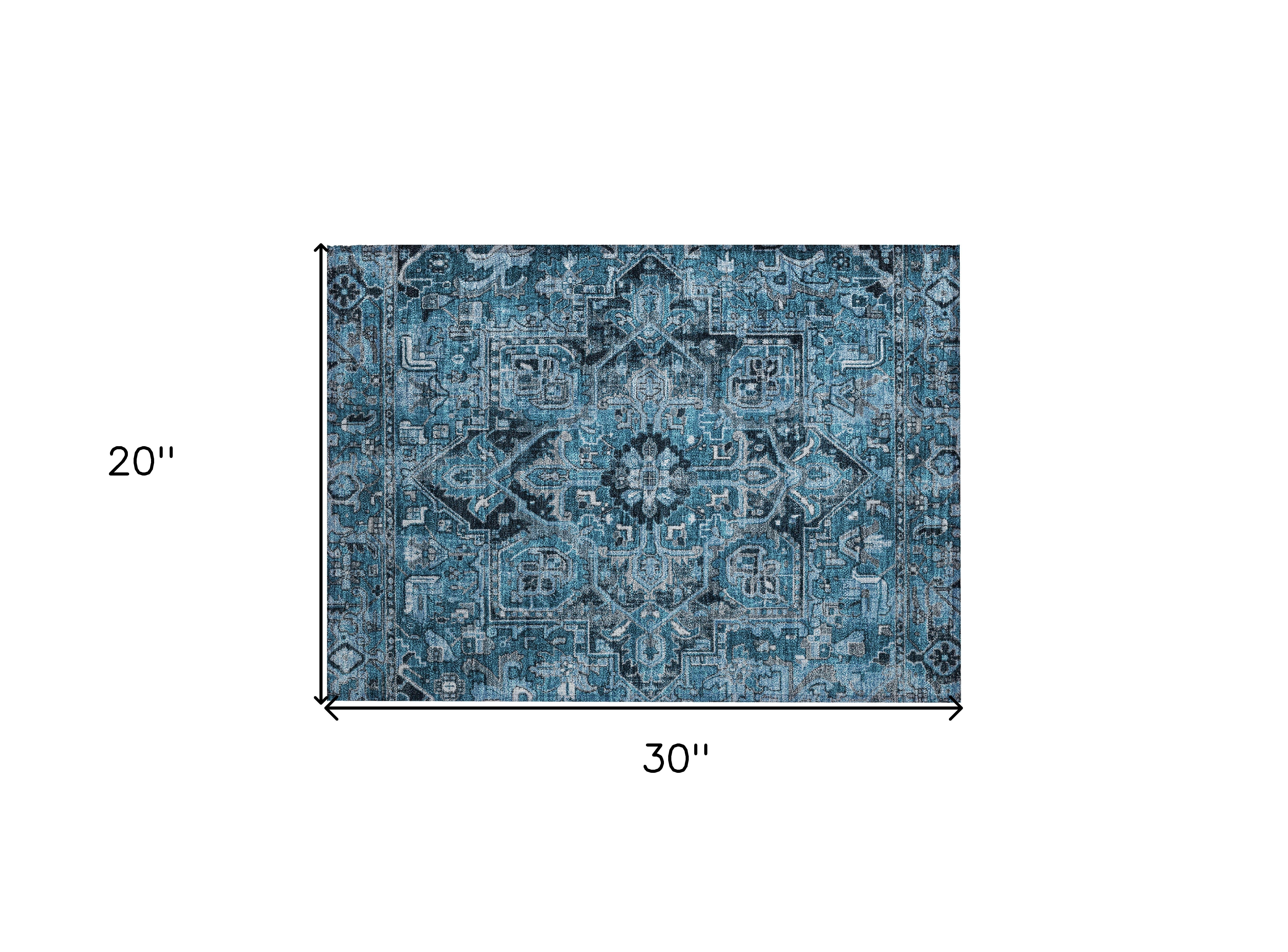 2' X 3' Denim and Gray Oriental Washable Non Skid Indoor Outdoor Area Rug