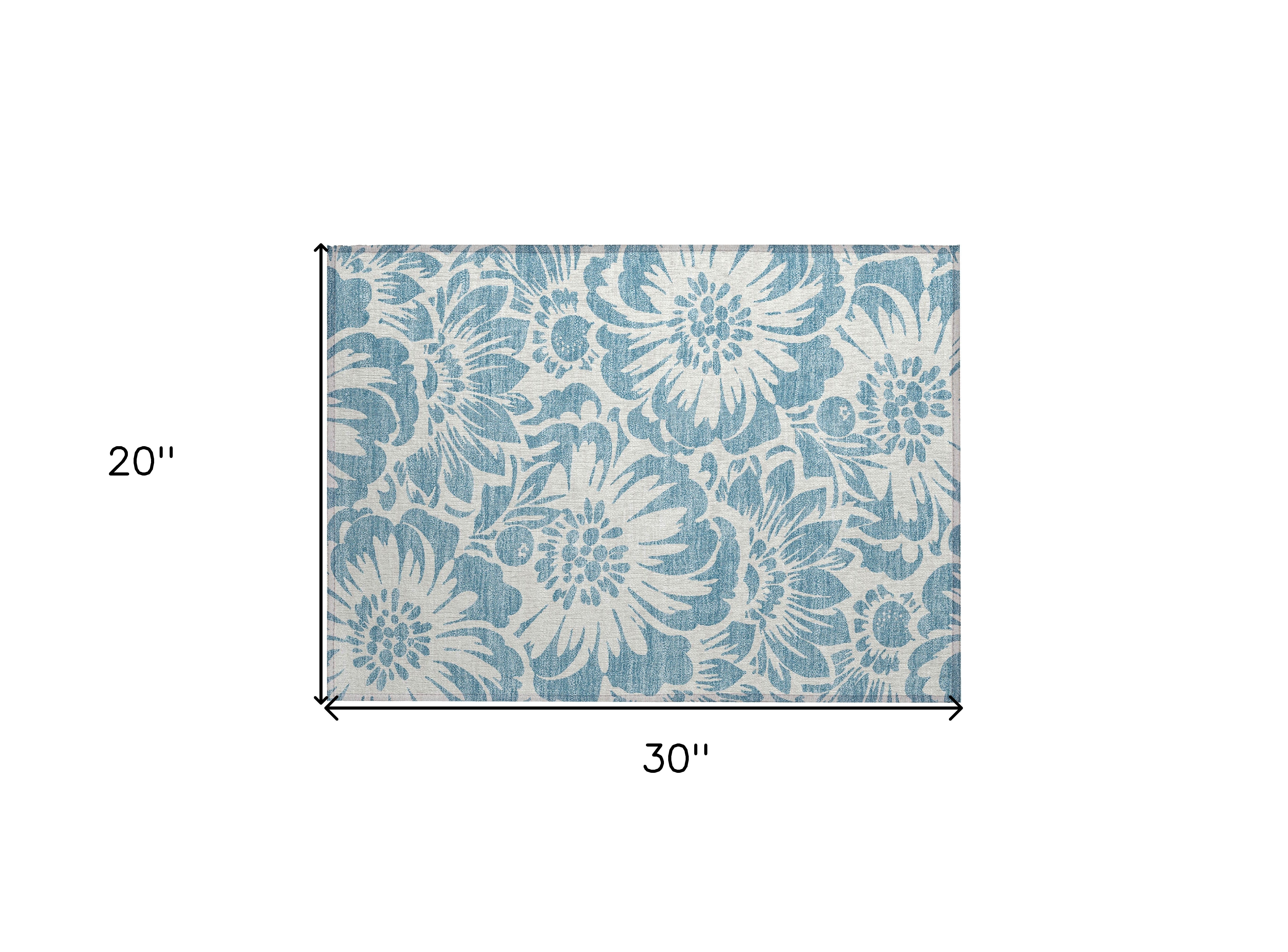2' X 3' Denim and Ivory Floral Washable Non Skid Indoor Outdoor Area Rug