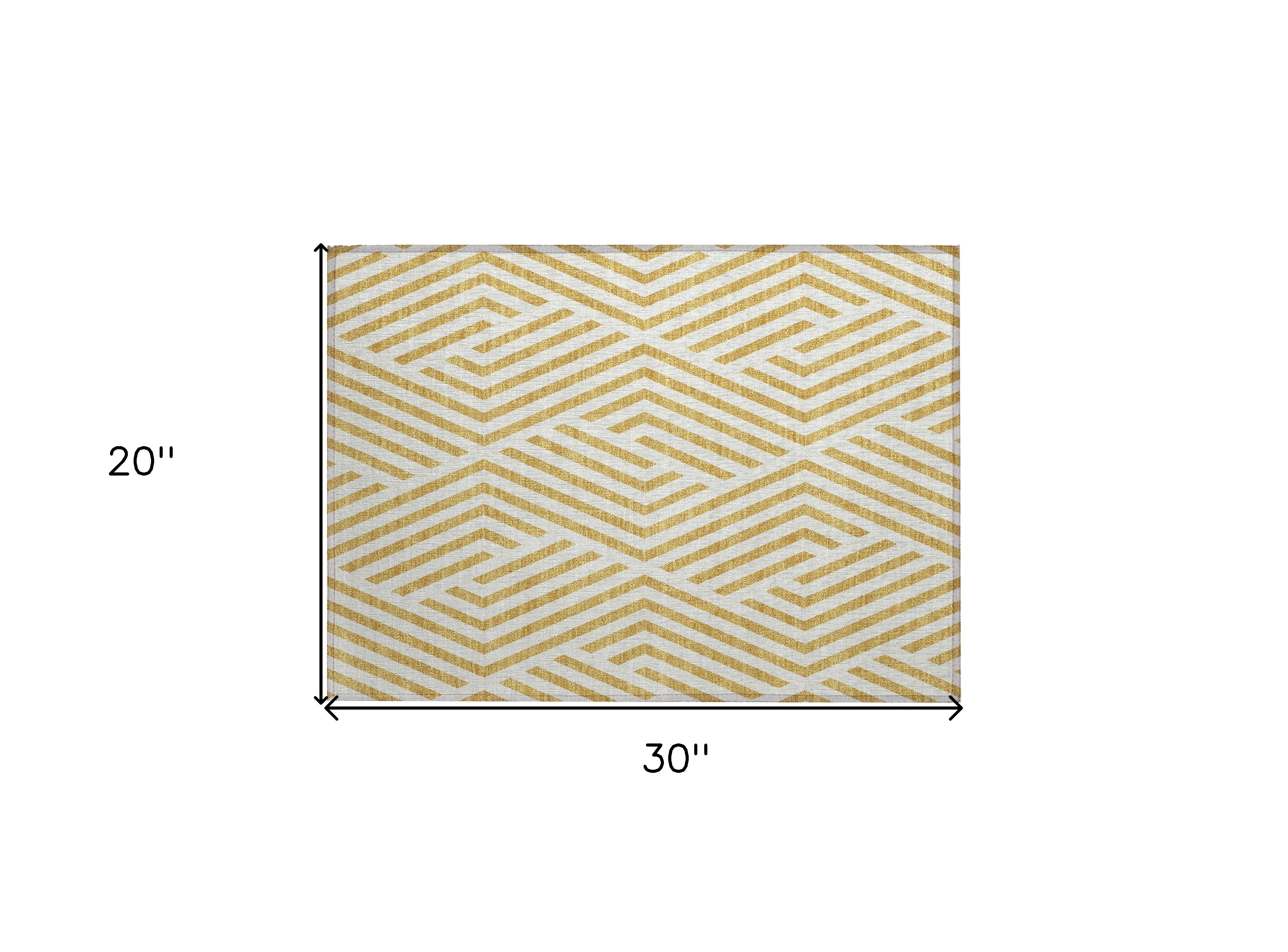 2' X 3' Gold and White Geometric Washable Non Skid Indoor Outdoor Area Rug