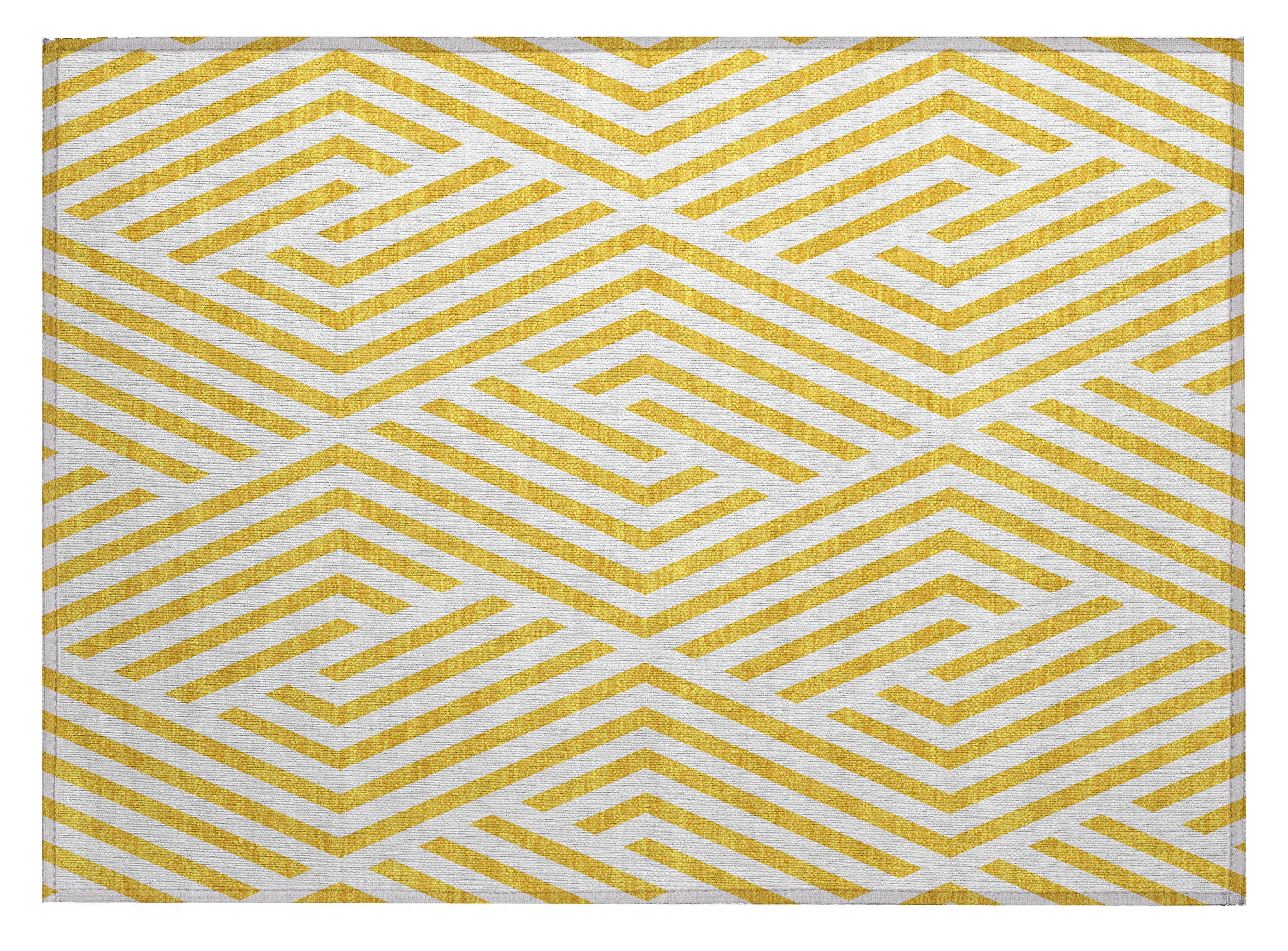 2' X 3' Gold and White Geometric Washable Non Skid Indoor Outdoor Area Rug