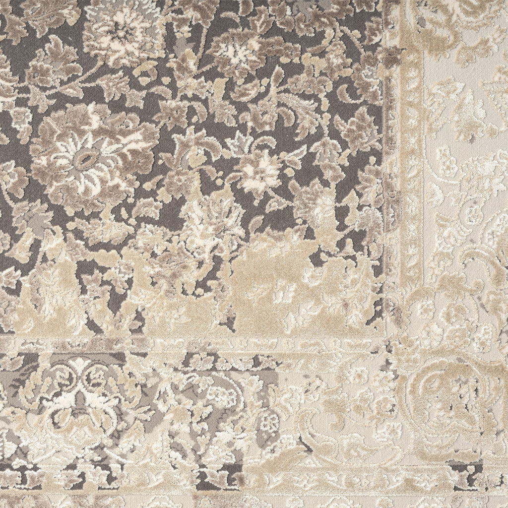 Add some artistry to your room with this 2-foot x 3-foot gray and ivory floral area rug....