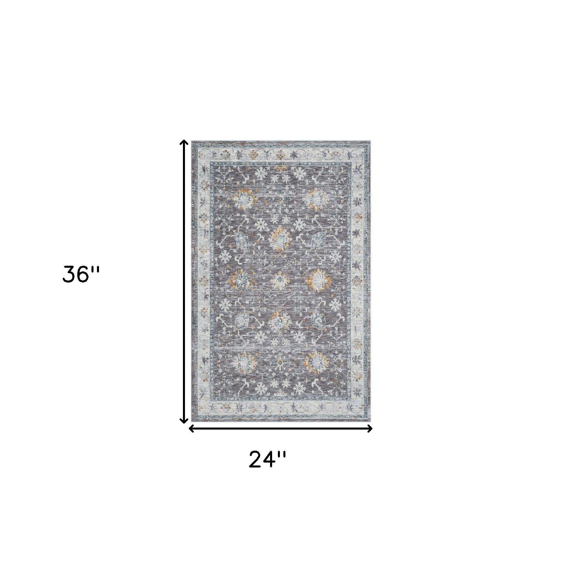 2' x 3' Gray and Ivory Floral Area Rug