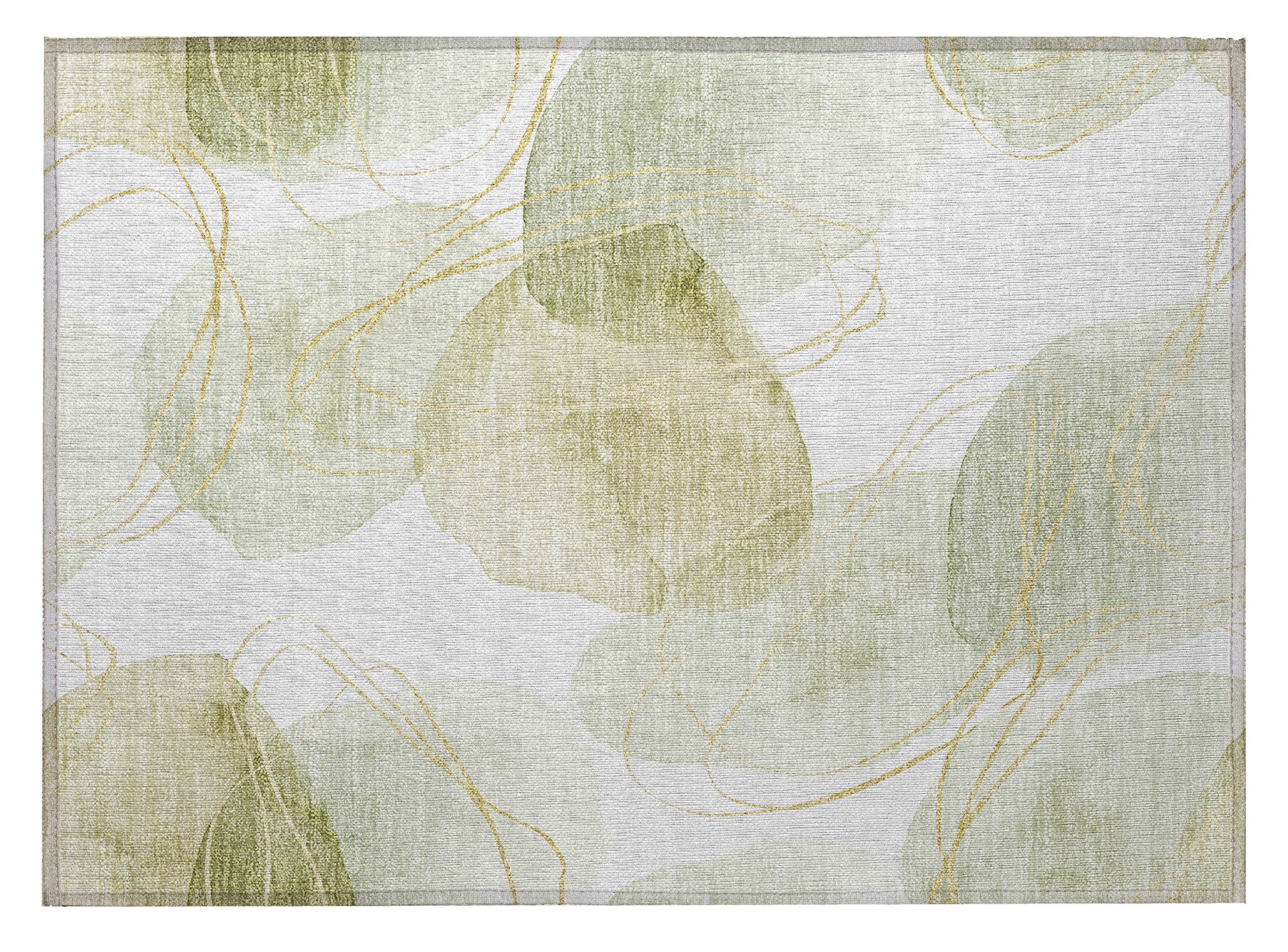 2' X 3' Green and Ivory Abstract Washable Non Skid Indoor Outdoor Area Rug
