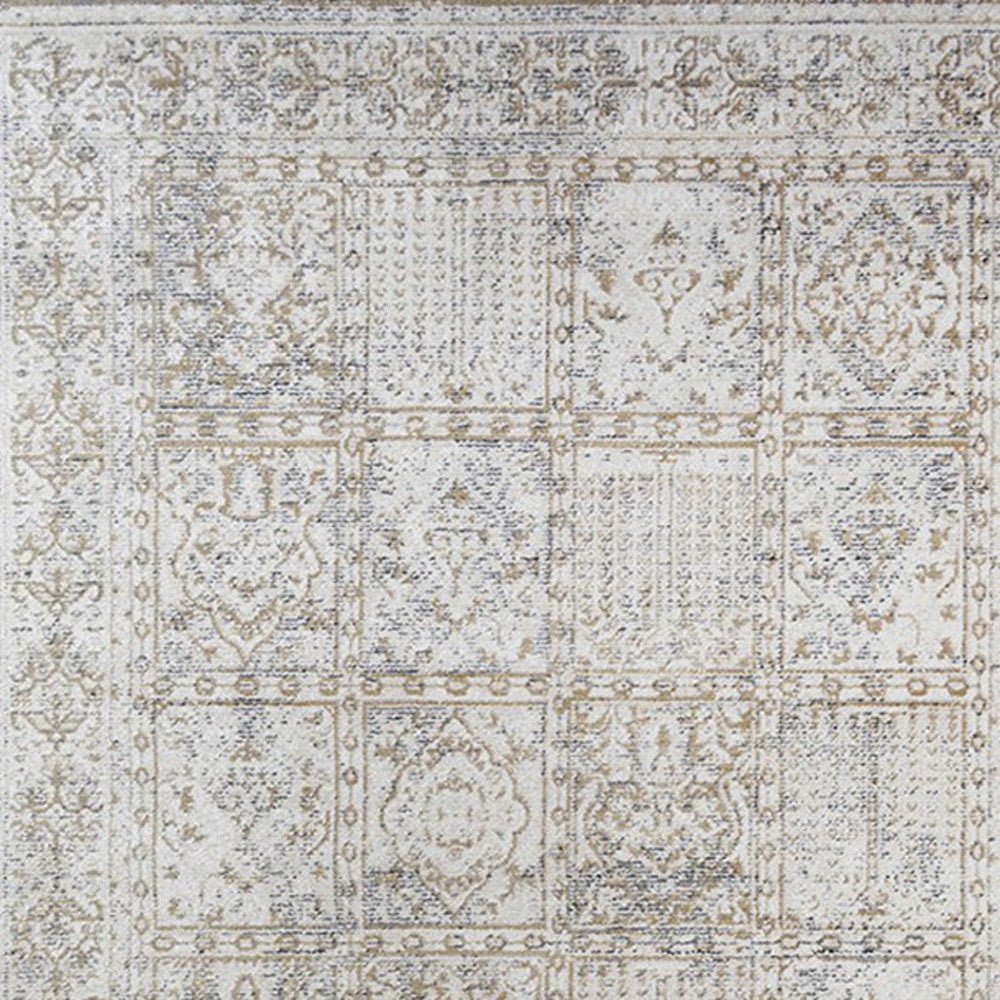 2' x 3' Ivory Oriental Distressed Area Rug With Fringe