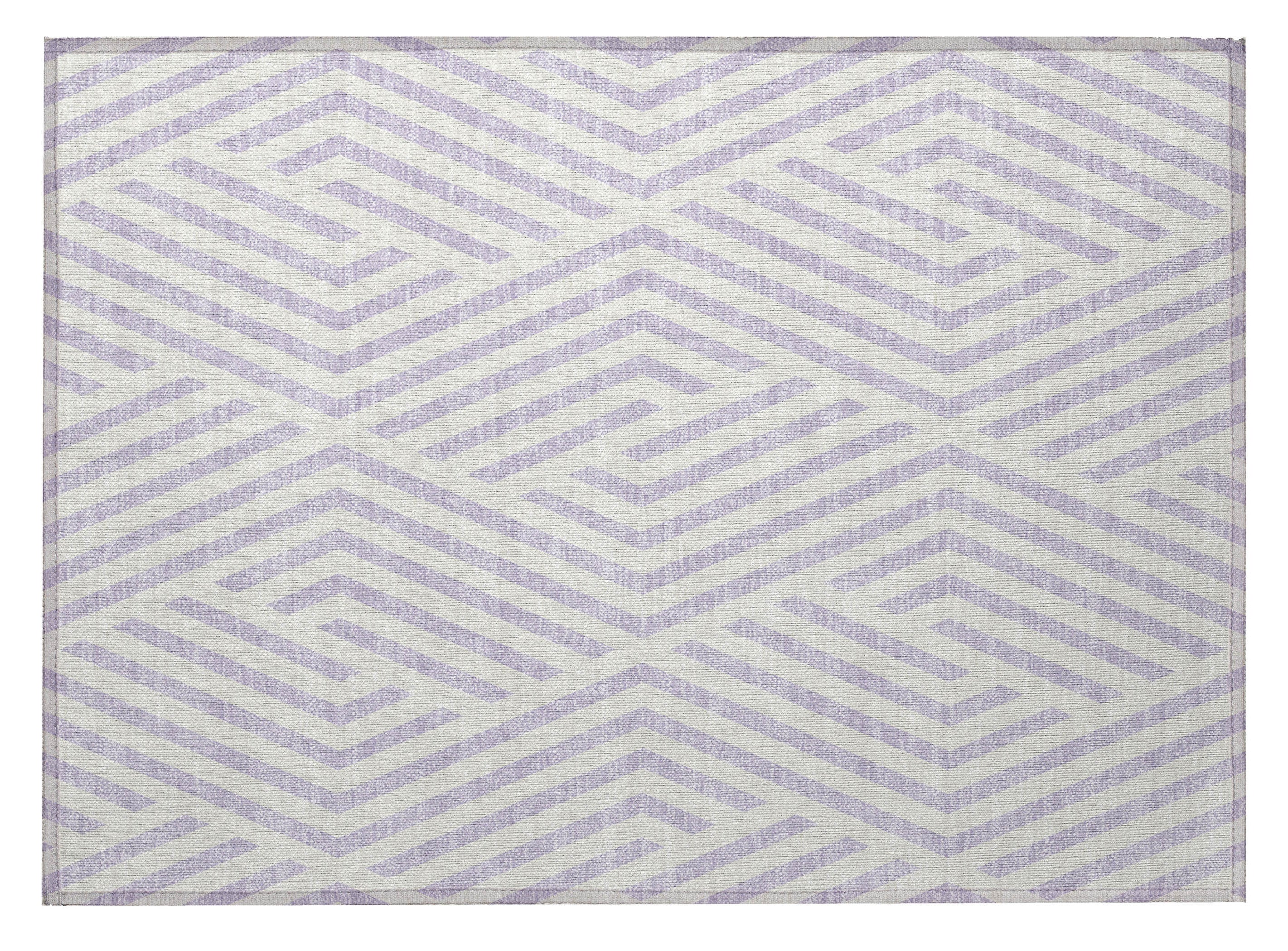 This 2-foot x 3-foot lavender and ivory geometric washable stain resistant non skid indoor outdoor area rug,...